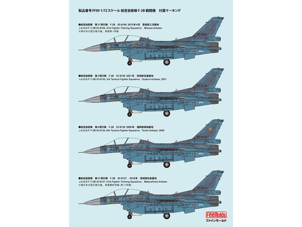 東日本大震災により多くのF-2Bが被災しましたが、その大半が修復され、現在も第一線で飛行を続けています。