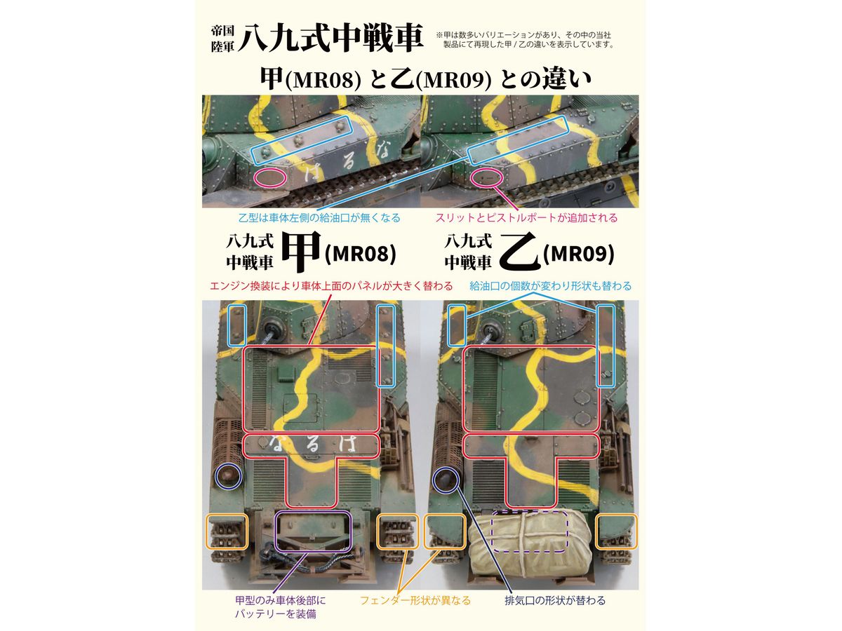 史実を再現した八九式中戦車のプラモデルとしては最初の、そして1/35スケールでは唯一となります。