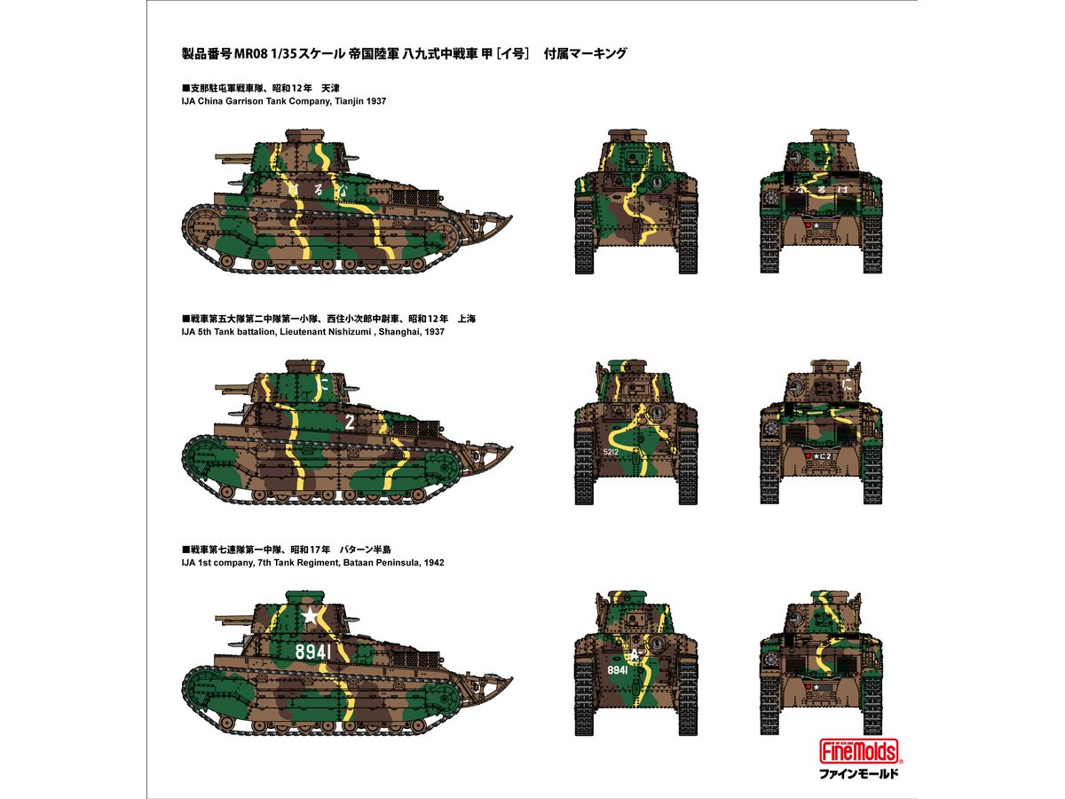 マーキングは中国大陸に配備されていた「はるな号」や、戦前に映画化もされた「西住戦車長」の乗車車両、大戦中に米軍と戦った第七戦車連隊所属車両のマーキング3種は付属します。