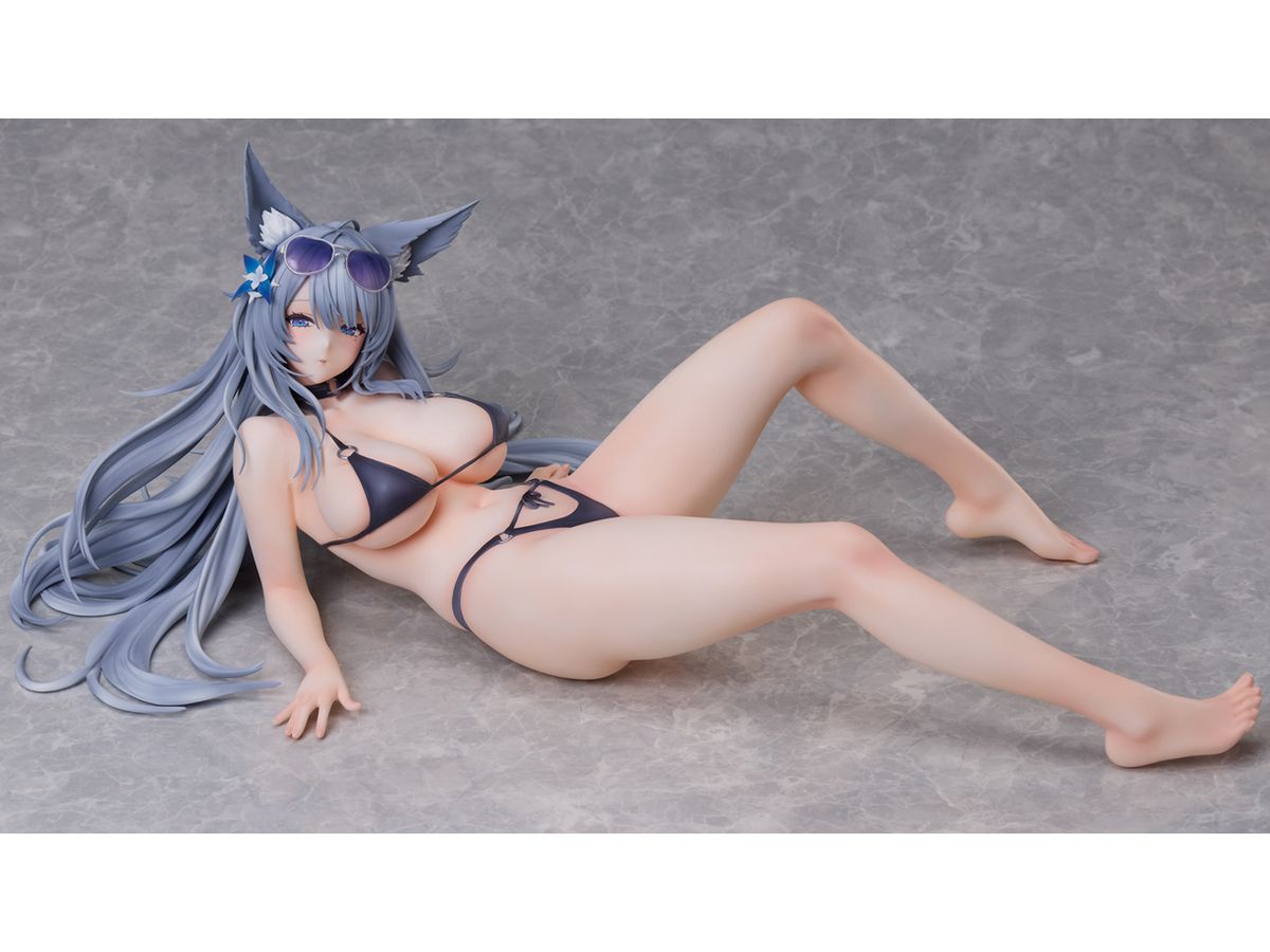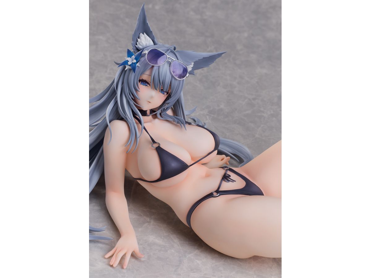 しなやかに流れる銀灰のロングヘアや、特徴的な狐耳、青い花飾り、頭部のサングラスなど、細部の造形にもこだわりました。