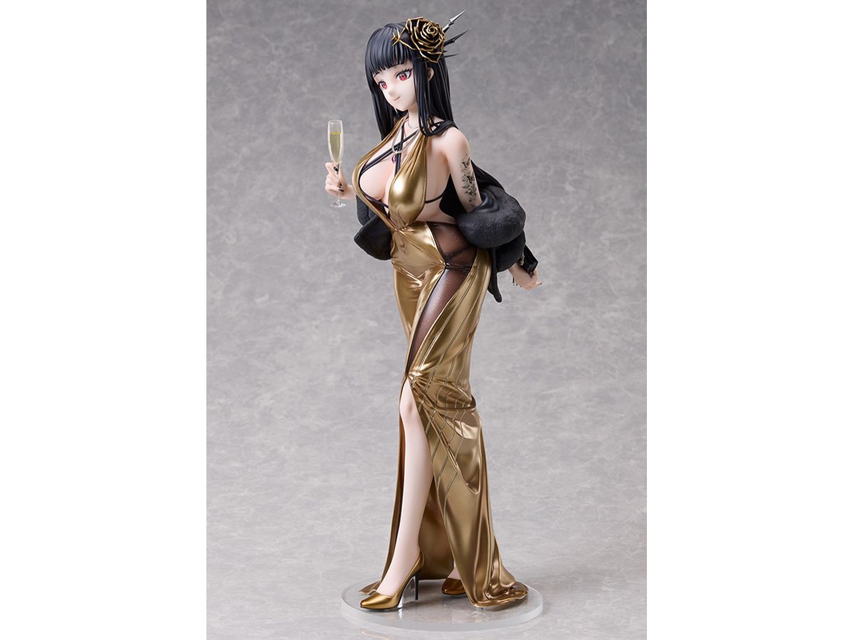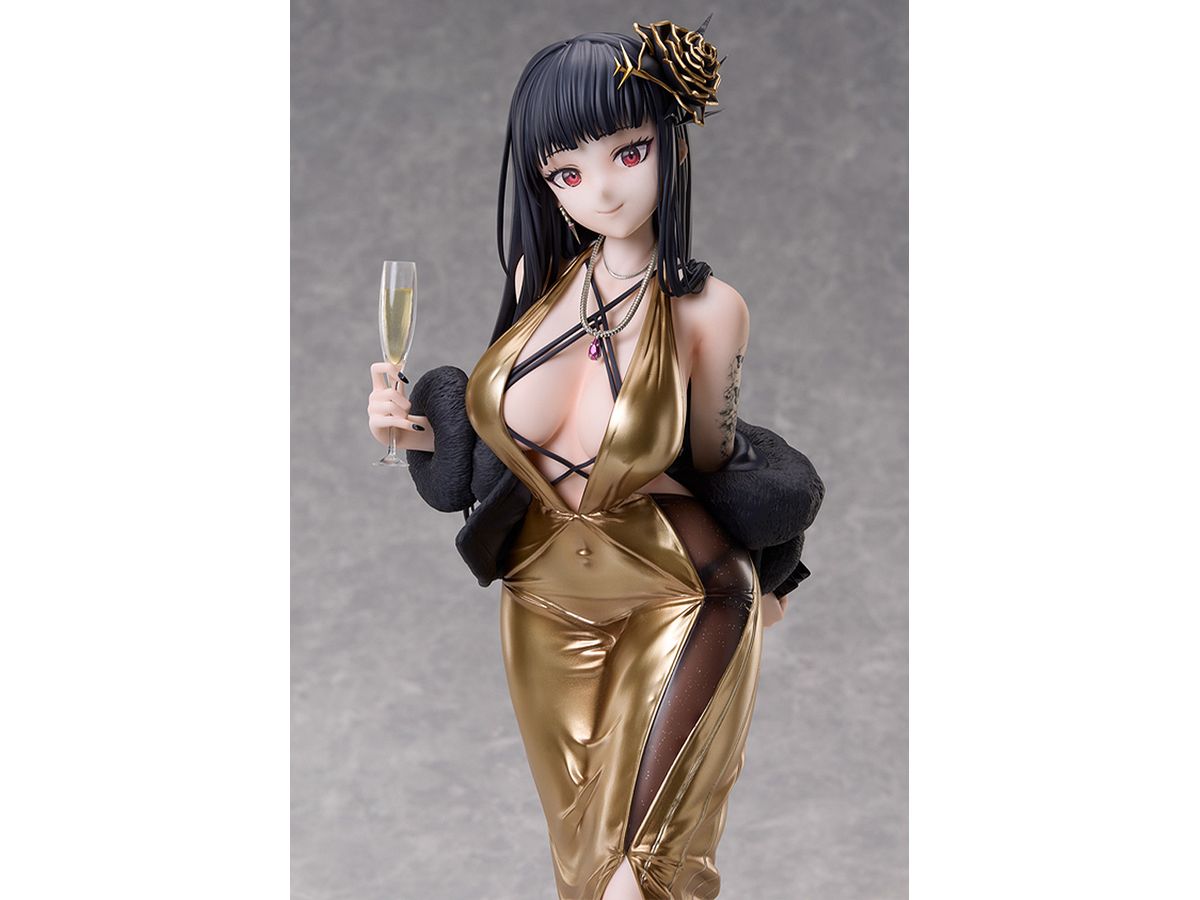 右手に掲げたシャンパングラスや、左腕のタトゥー、ドレスに隠れたバーコードまで、ディテールを徹底再現しました。