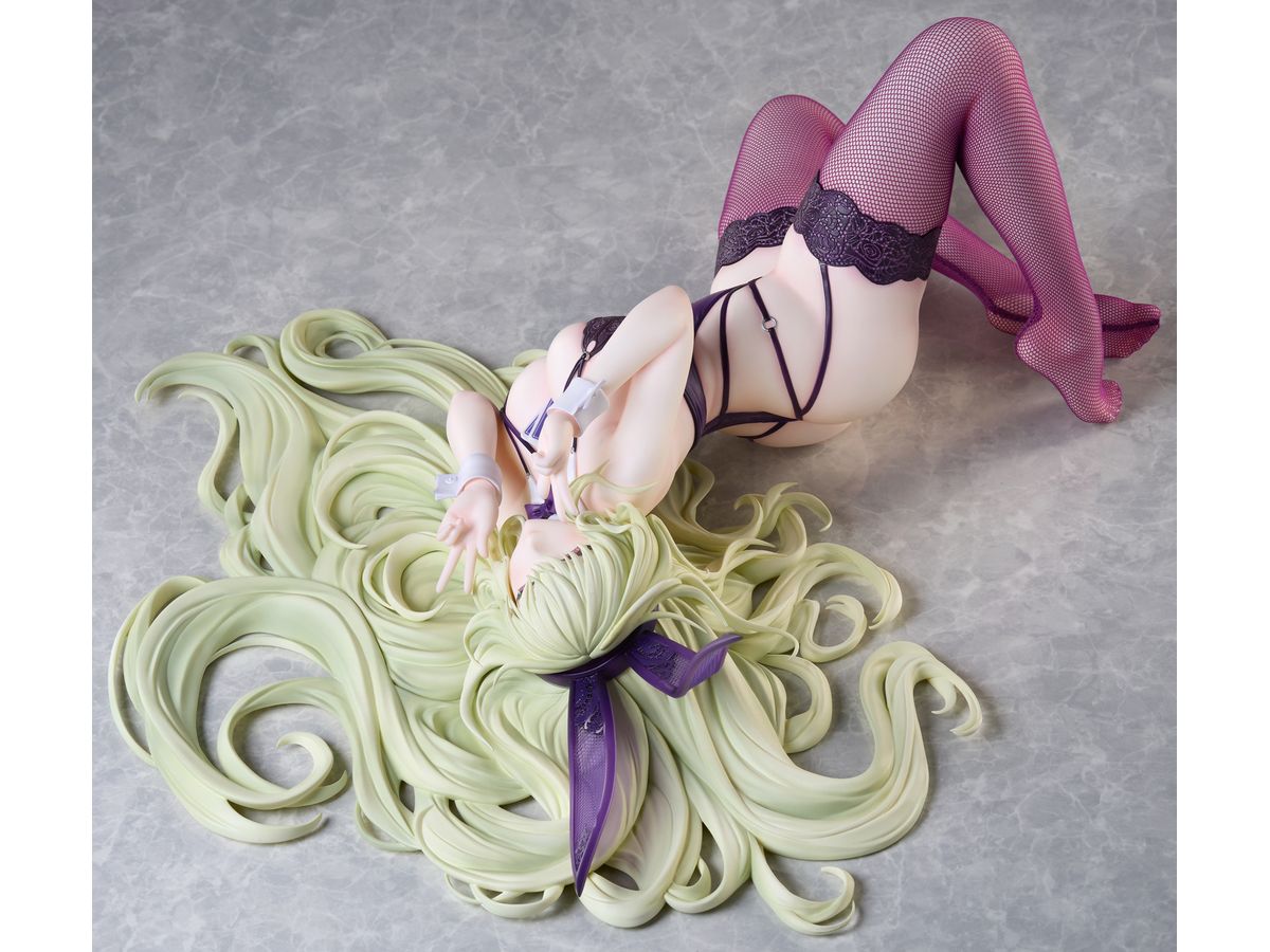 艶やかなパープルを基調としたバニーガール衣装は、胸元や腰回りのストラップ、レースのディテールまで作り込みを行いました。