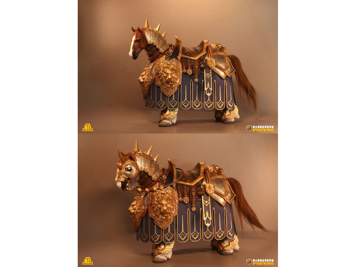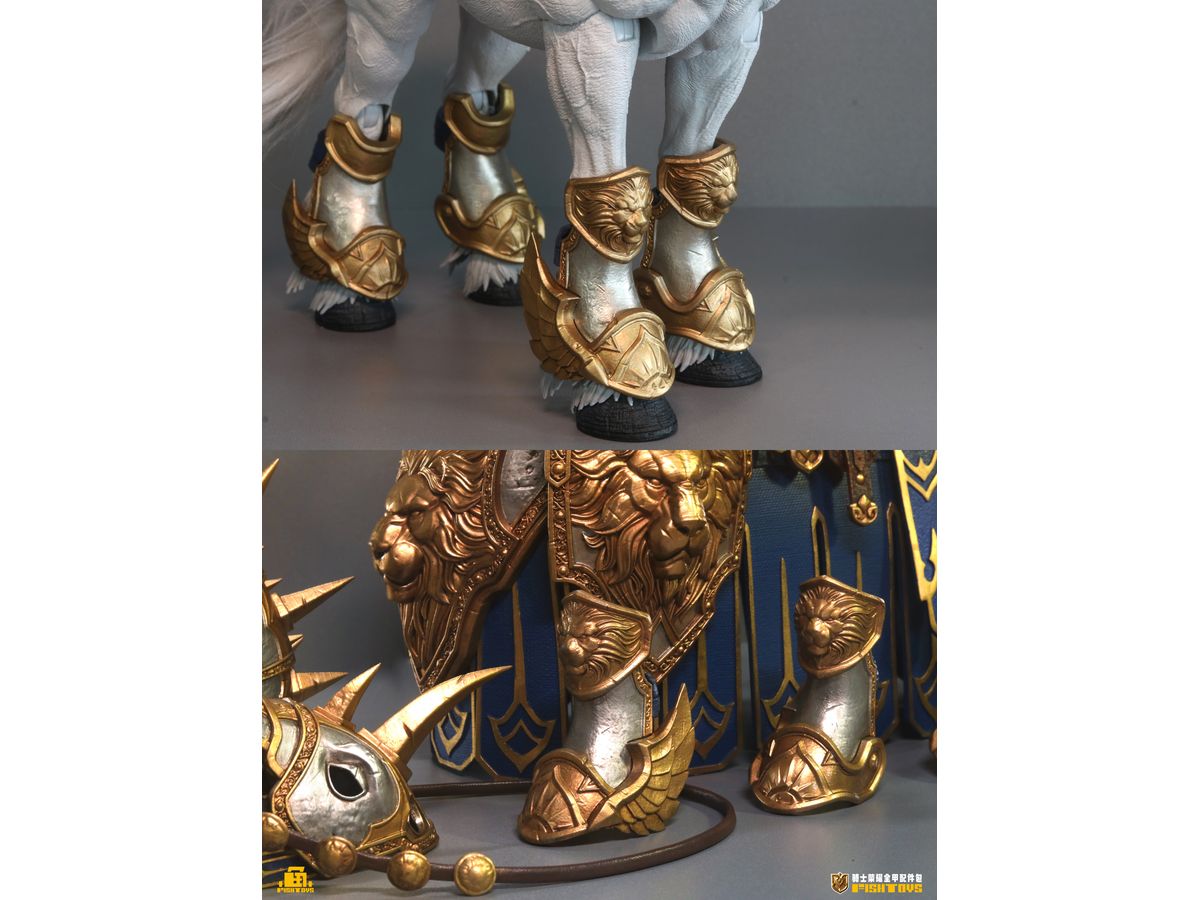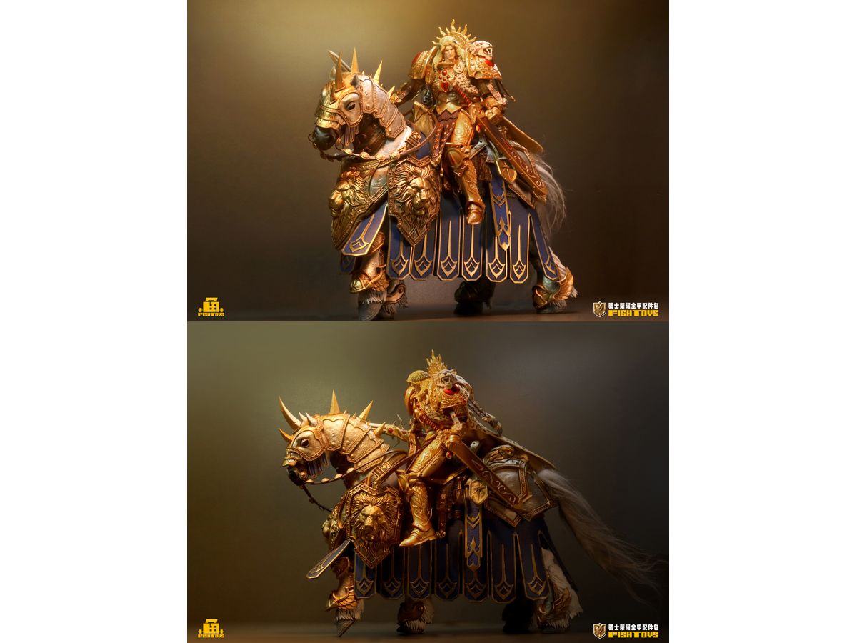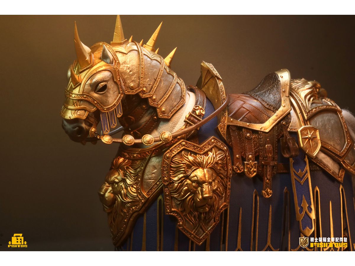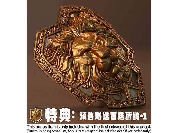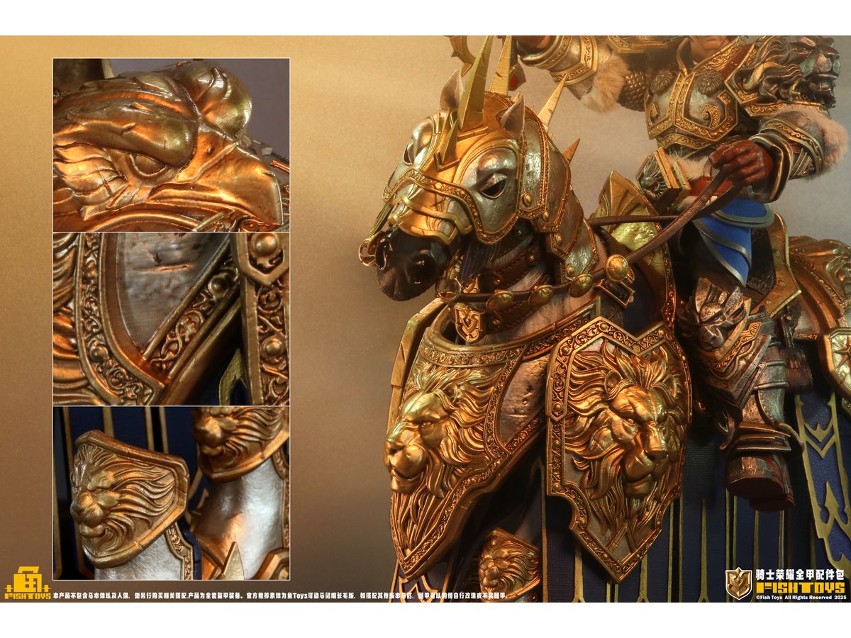ライオンの意匠が施された豪華絢爛な黄金の甲冑は、 重厚な造形とメタリックな塗装で圧倒的な存在感を放ちます。