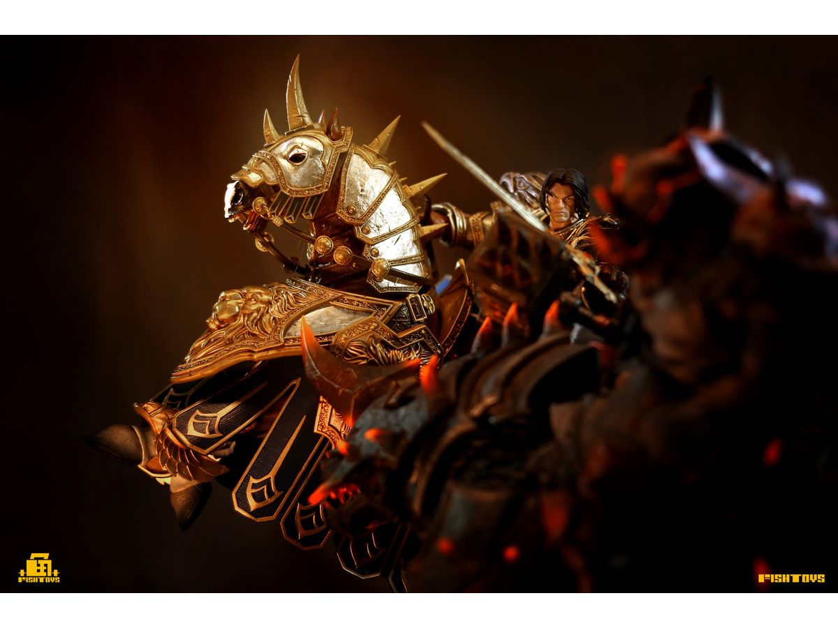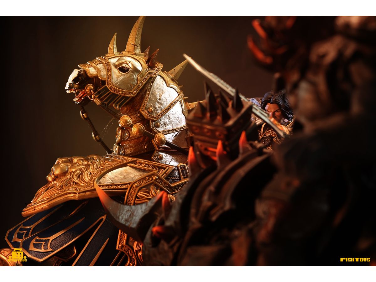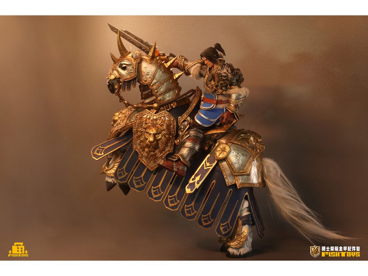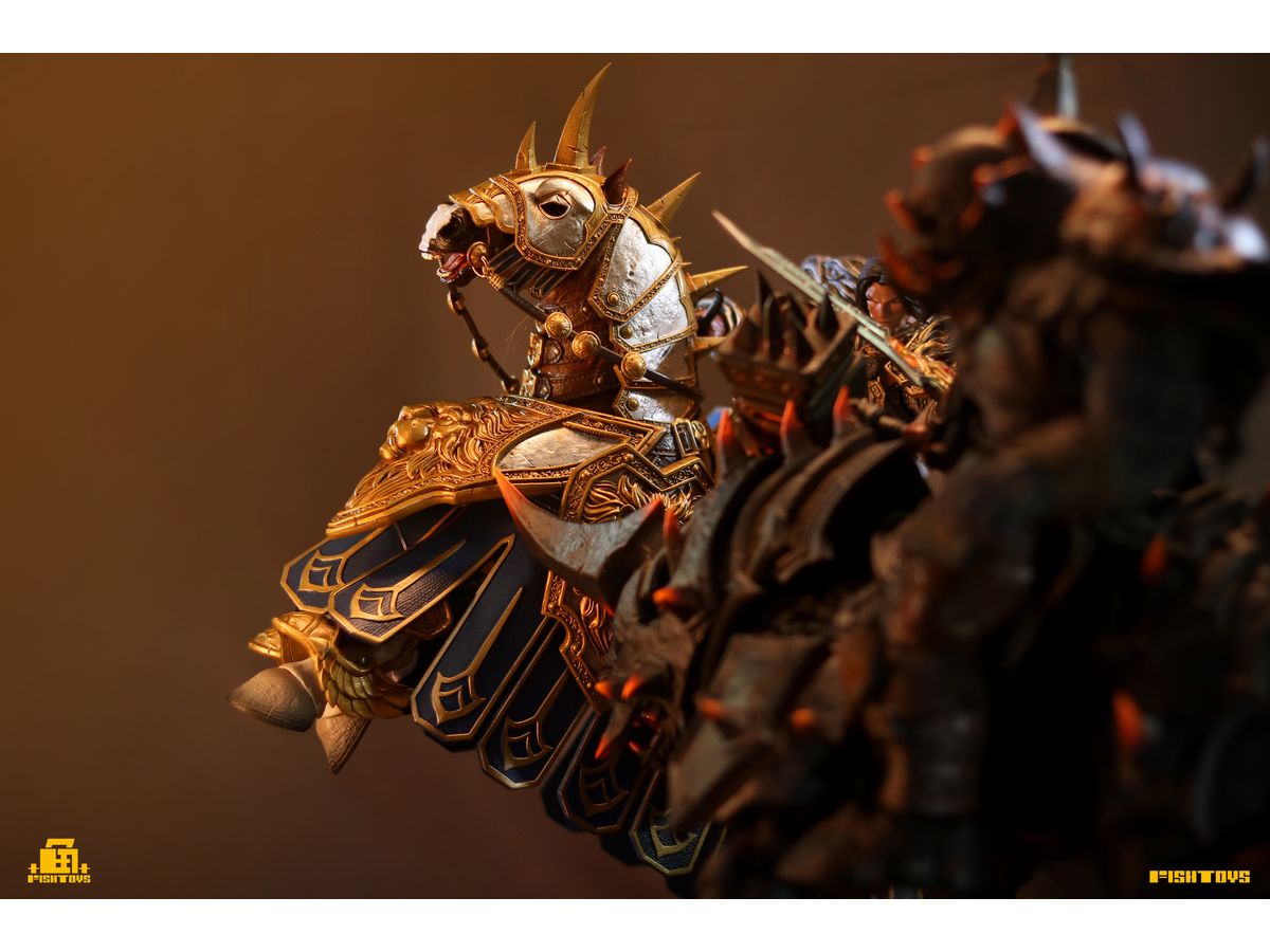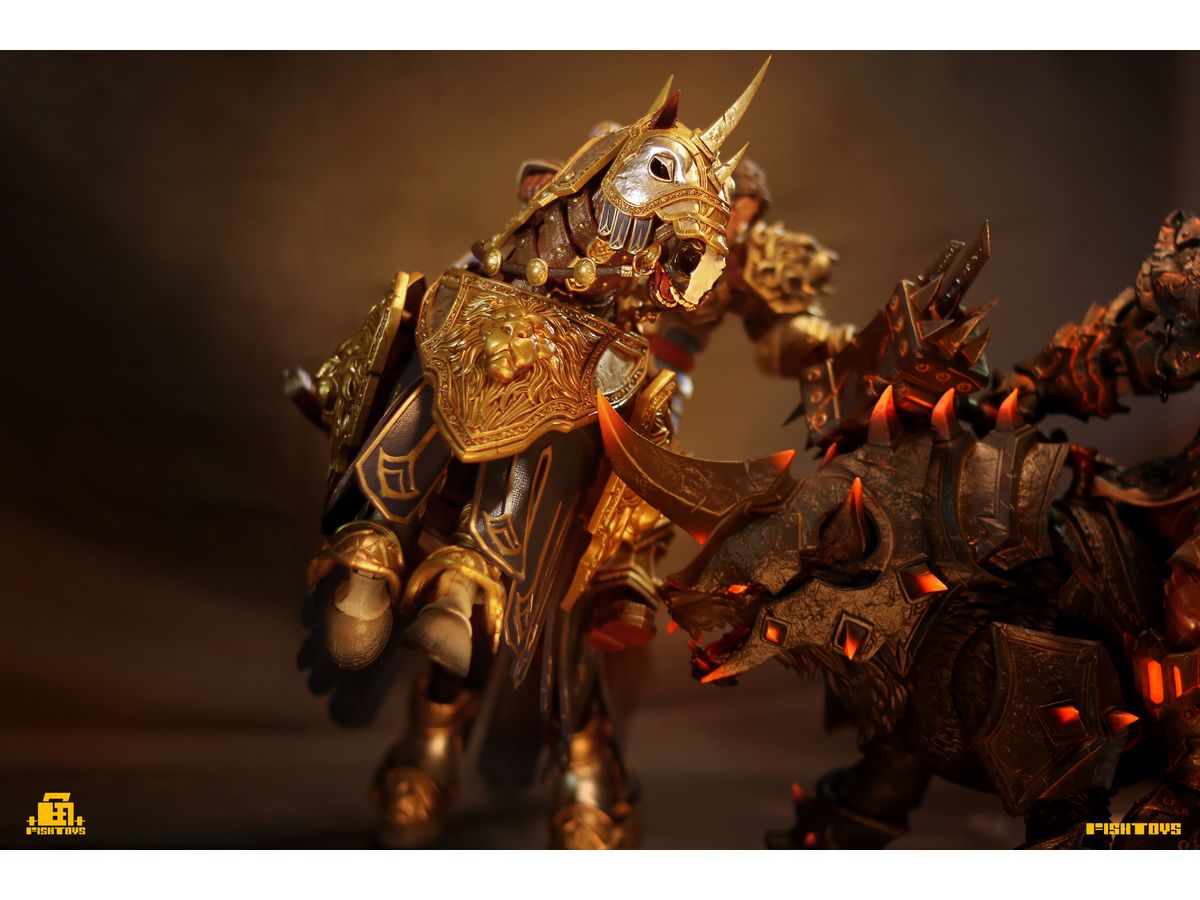 ライオンの意匠が施された豪華絢爛な黄金の甲冑は、 重厚な造形とメタリックな塗装で圧倒的な存在感を放ちます。