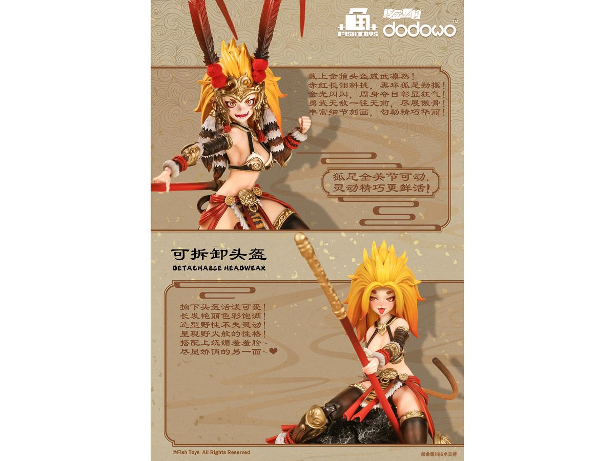 如意棒を片手に構え、長い尻尾を揺らし、活発で妖艶なポーズが魅力。
