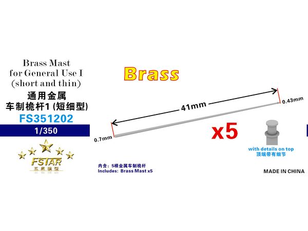 1/350 真鍮製汎用マストI (短細) (5本入り)