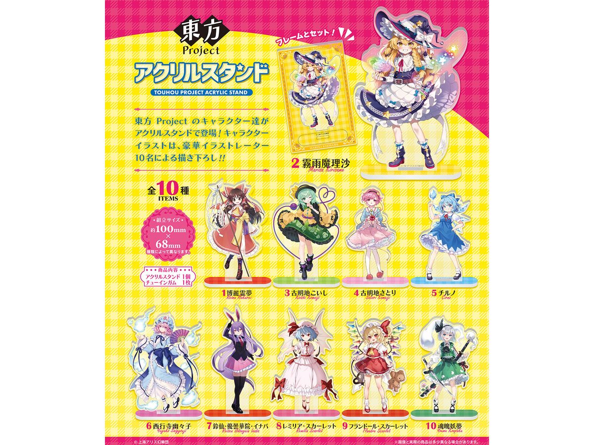 東方Project のキャラクター達がアクリルスタンドで登場!キャラクターイラストは、豪華イラストレーター10名による描き下ろし!!