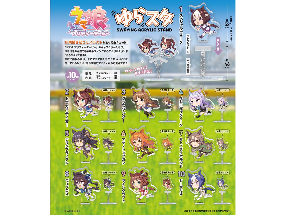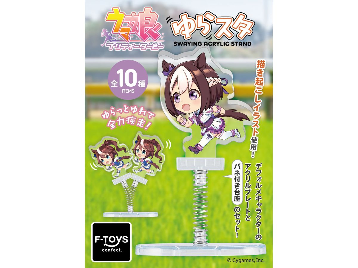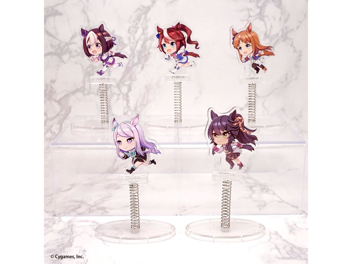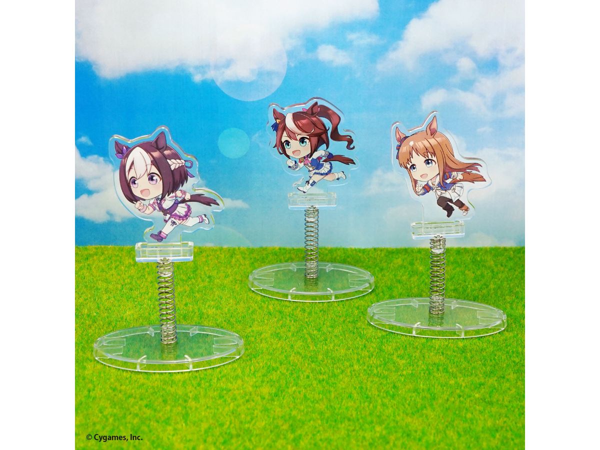 「ウマ娘 プリティーダービー」のキャラクターたちが、バネ付きの台座でゆらゆらスイングするアクリルスタンド「ゆらスタ」になって新登場!