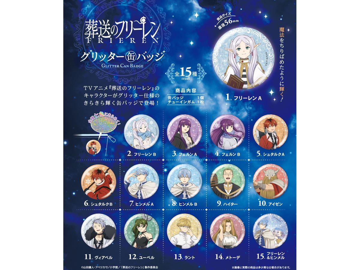 TVアニメ『葬送のフリーレン』のキャラクターがグリッター仕様のきらきら輝く缶バッジで登場!