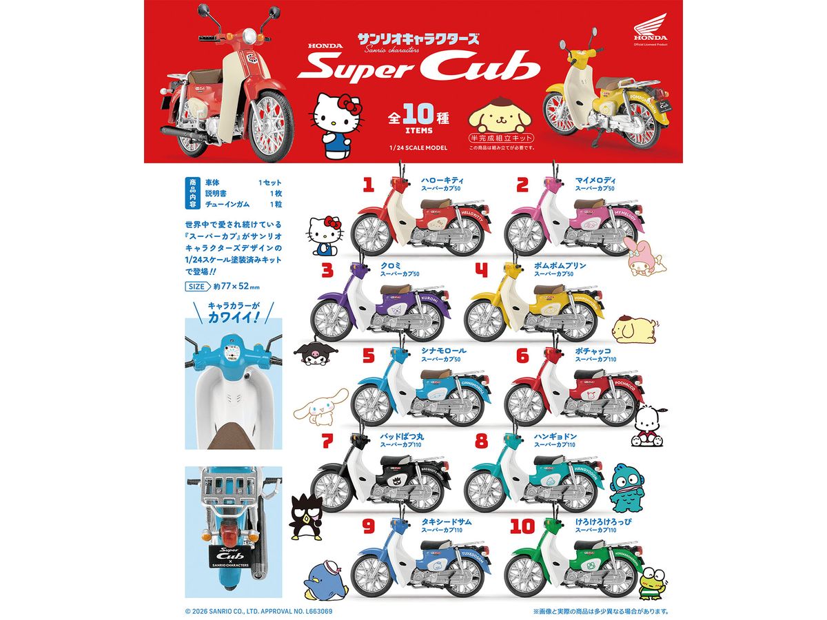 世界中で愛され続けている『スーパーカブ』がサンリオキャラクターズデザインの1/24スケール塗装済みキットで登場!!