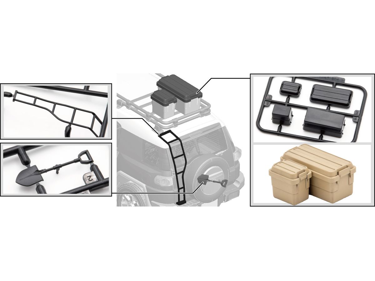 ・背面のラダー、スペアタイヤ上に取り付ける形のシャベルが各1個ずつ付属