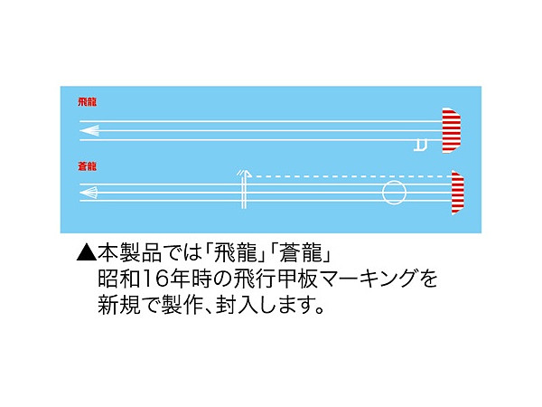 本製品では「飛龍」「蒼龍」の昭和16年時の飛行甲板マーキングを新規で製作、封入します。