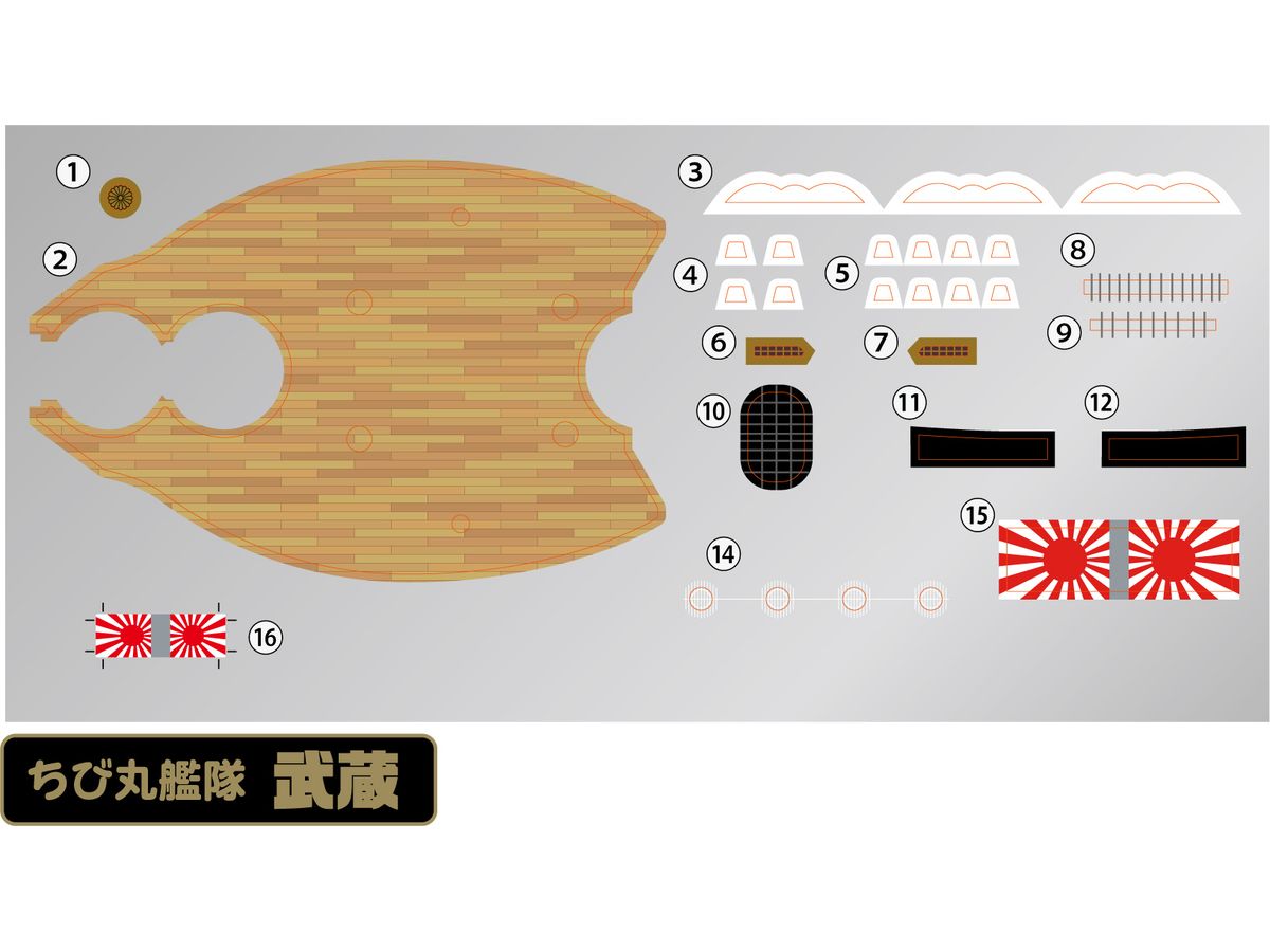 シールにはリアルな木目模様を再現した木甲板、菊花紋章、探照灯などを収録。