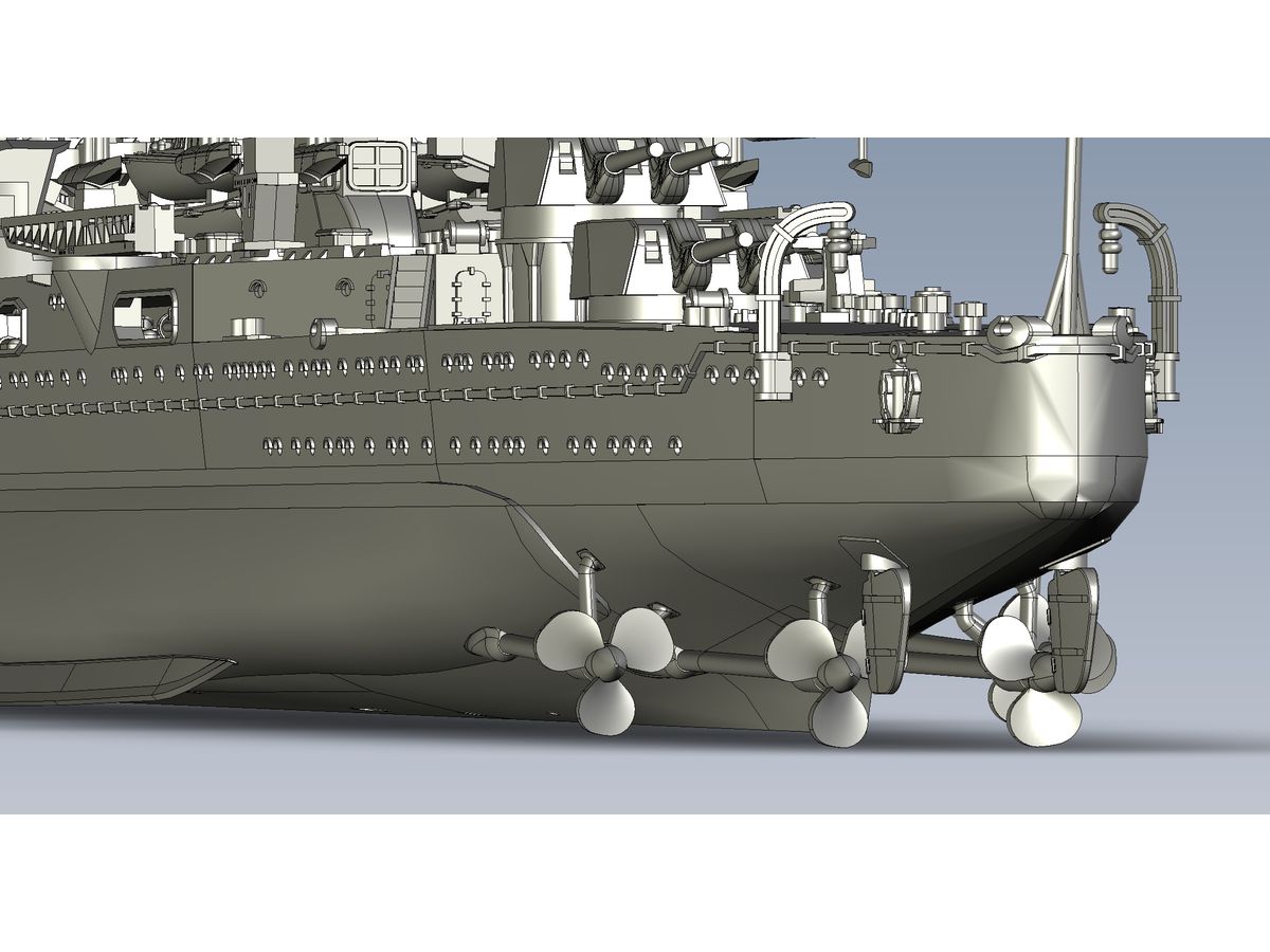 →舷外電路は艦体に一体モールドとし、三隈/鈴谷/熊野とは異なる走り形状を表現