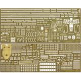 □エッチングパーツには艦体、艦橋、砲塔部などの各種手摺(脚無しタイプ、一部弛み表現付き)、 梯子、 ラッタル、水密扉、21号電探、探照灯台座トラス、 クレーン、 艦橋窓枠、 ボートダビッド、 射出機、機銃シールド、機銃照準器、 単装機銃、水上機プロペラ、ループアンテナなどを収録。