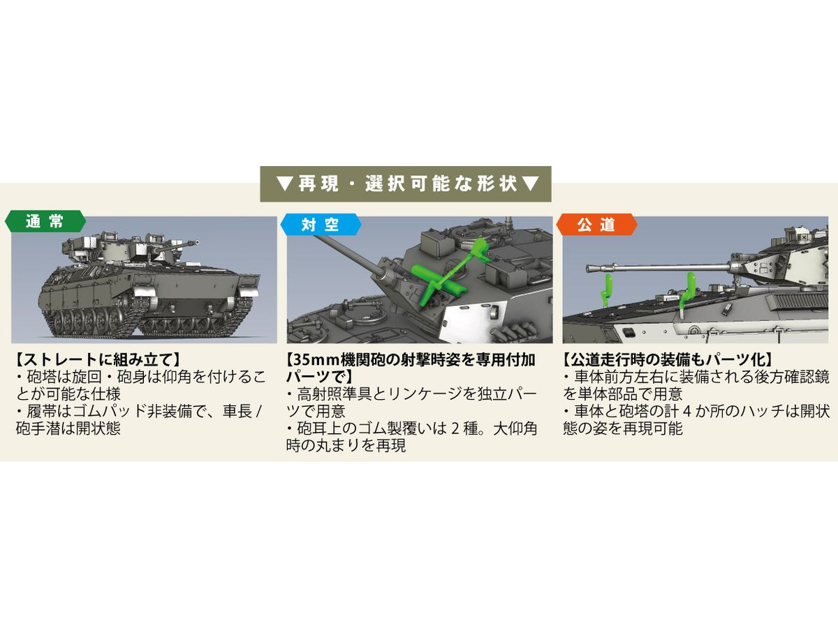 ・操縦手ハッチ、分隊長席ハッチは別パーツ化、「開/閉」どちらかの状態を選択可能