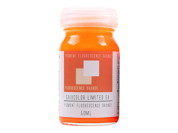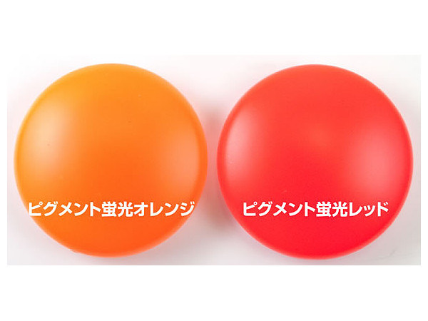 顔料系の蛍光色です。顔料系なので上塗りの塗料に染み出すことがありません。