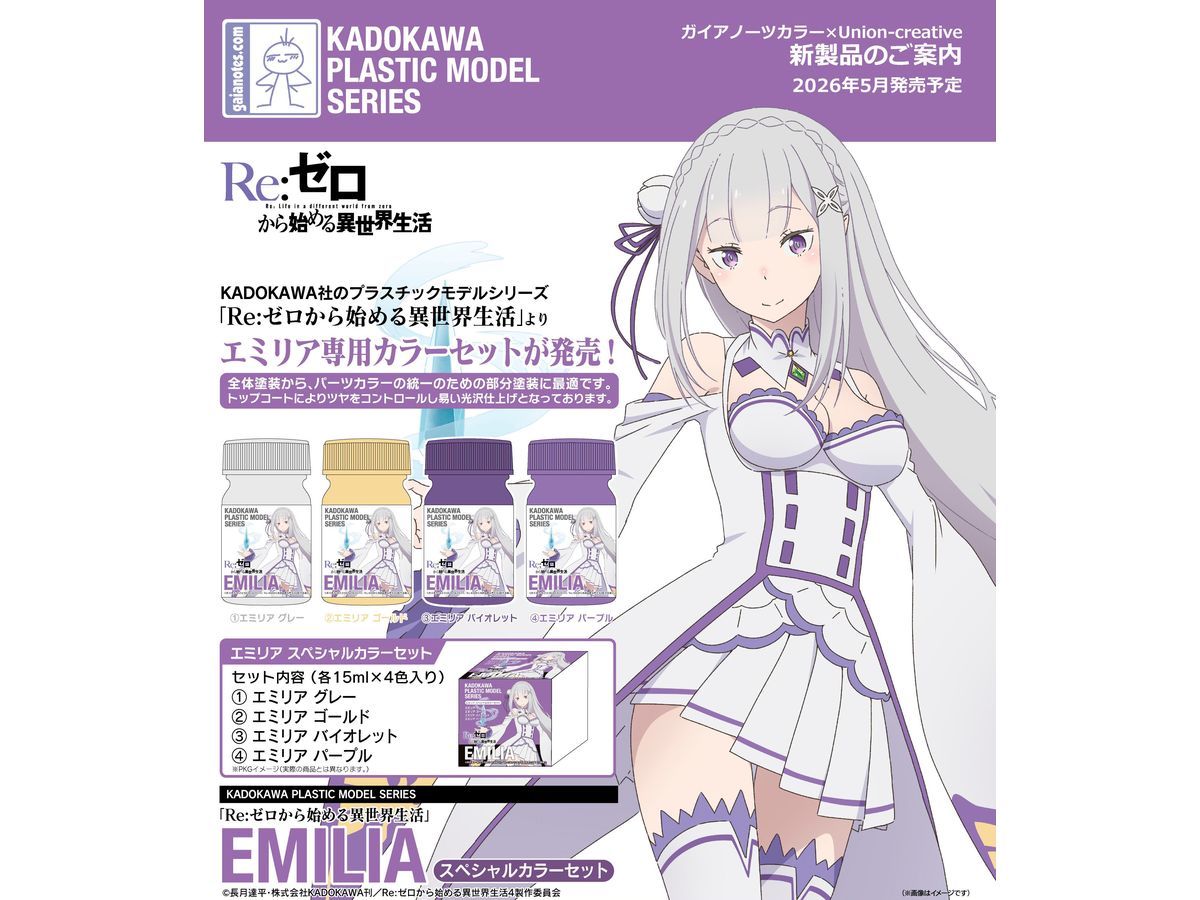 KADOKAWA PLASTIC MODEL SERIES 「Re:ゼロから始める異世界生活」 エミリアより、専用カラーセットを発売いたします。