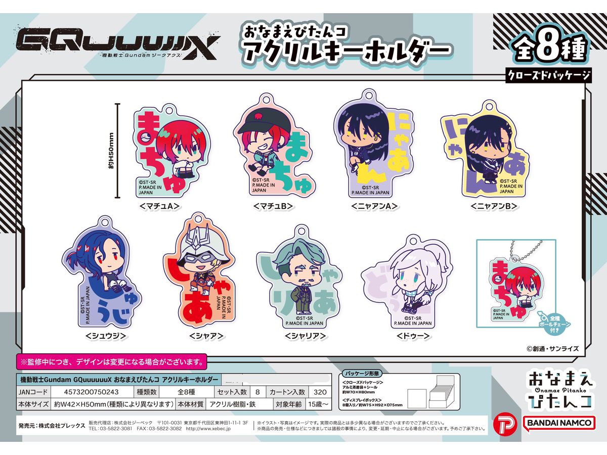 機動戦士Gundum GQuuuuuuuX: おなまえぴたんコ アクリルキーホルダー 1Box 8pcs