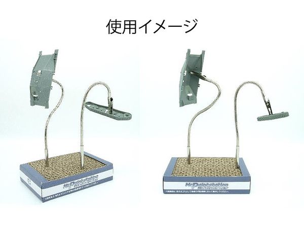 高い保持力を持つ金属製フレキシブルホースを柄の部分に採用した本商品は、クリップ部分を自由に曲げて好きな向きでパーツを固定することが可能です。