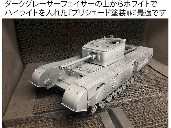 色味は、ブラックよりも明るいので、暗部を先に描き込む『プリシェード塗装』にも最適。