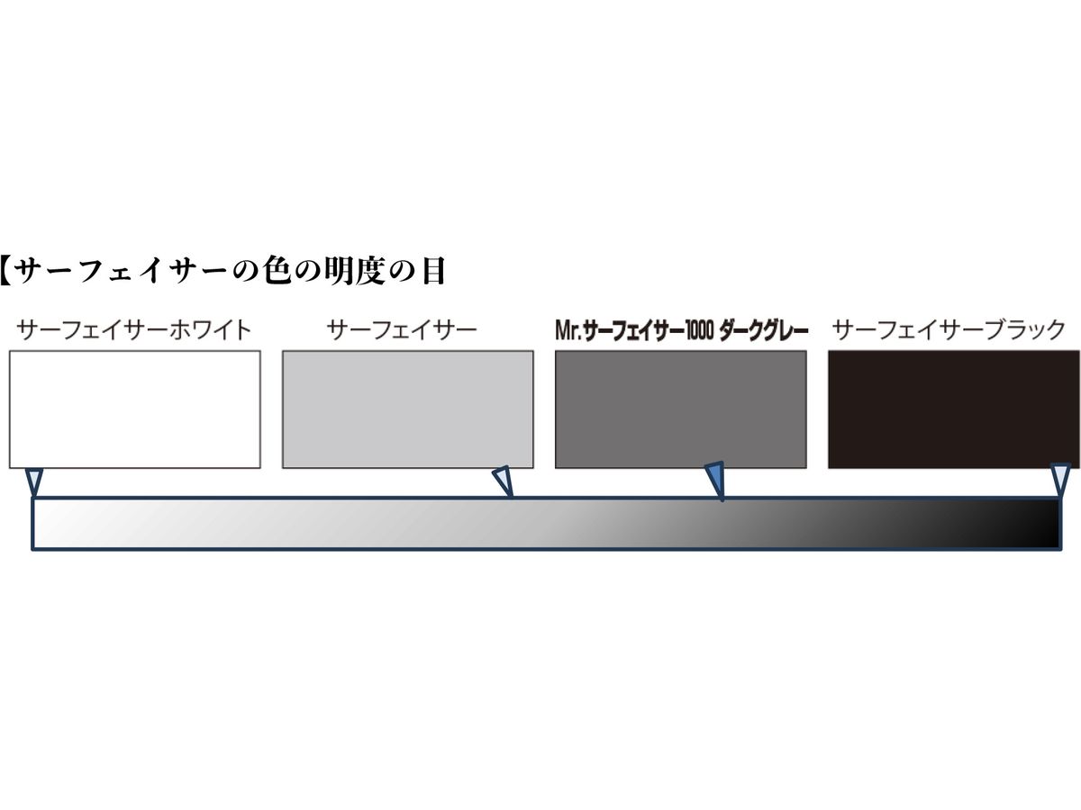 発売中のホワイト、グレー、ブラックのサーフェイサーと併せてトーンを調節しやすくなります。