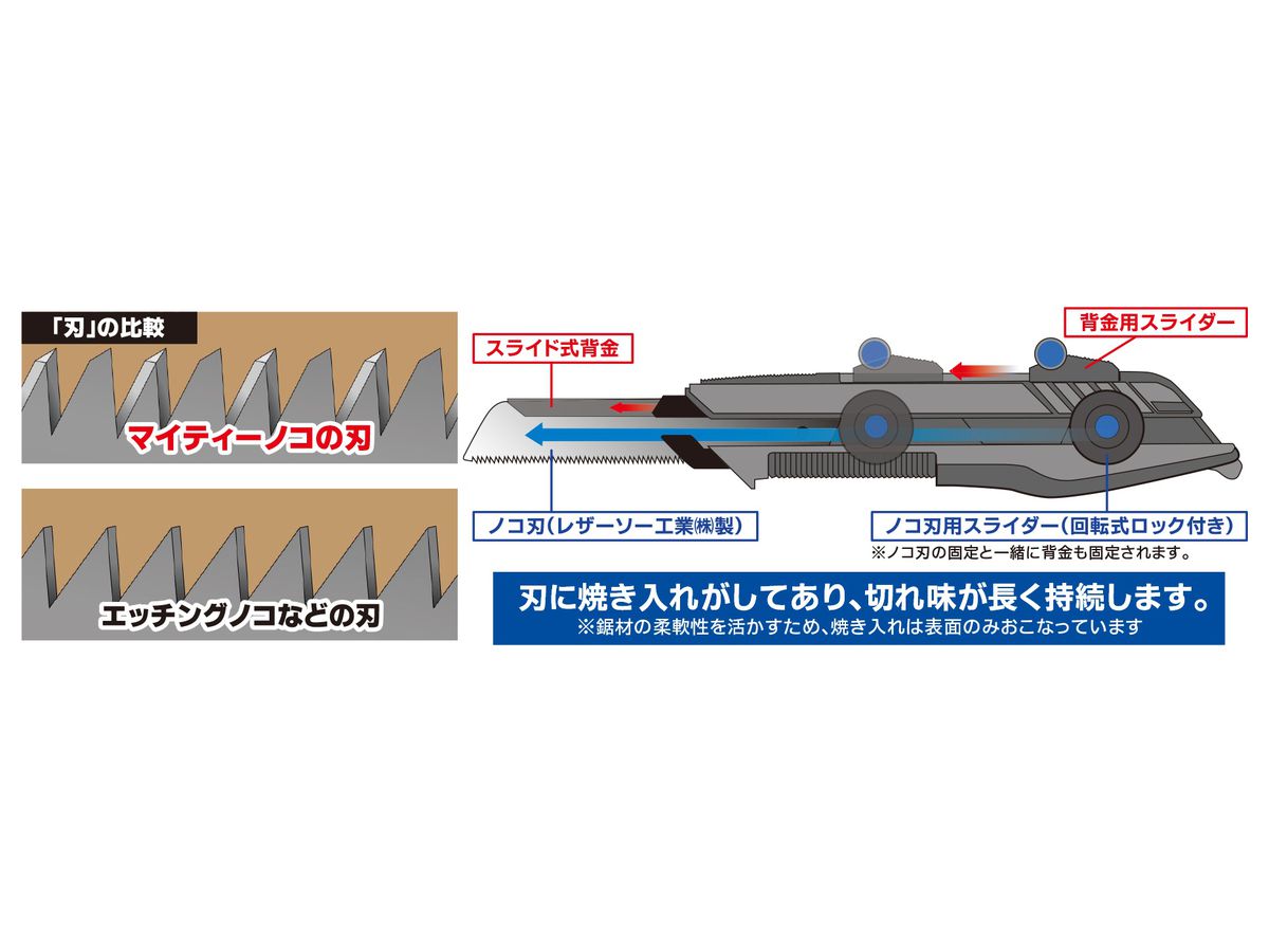 レザーソー工業㈱製のノコ刃はしっかりと刃が付いているので切れ味抜群。