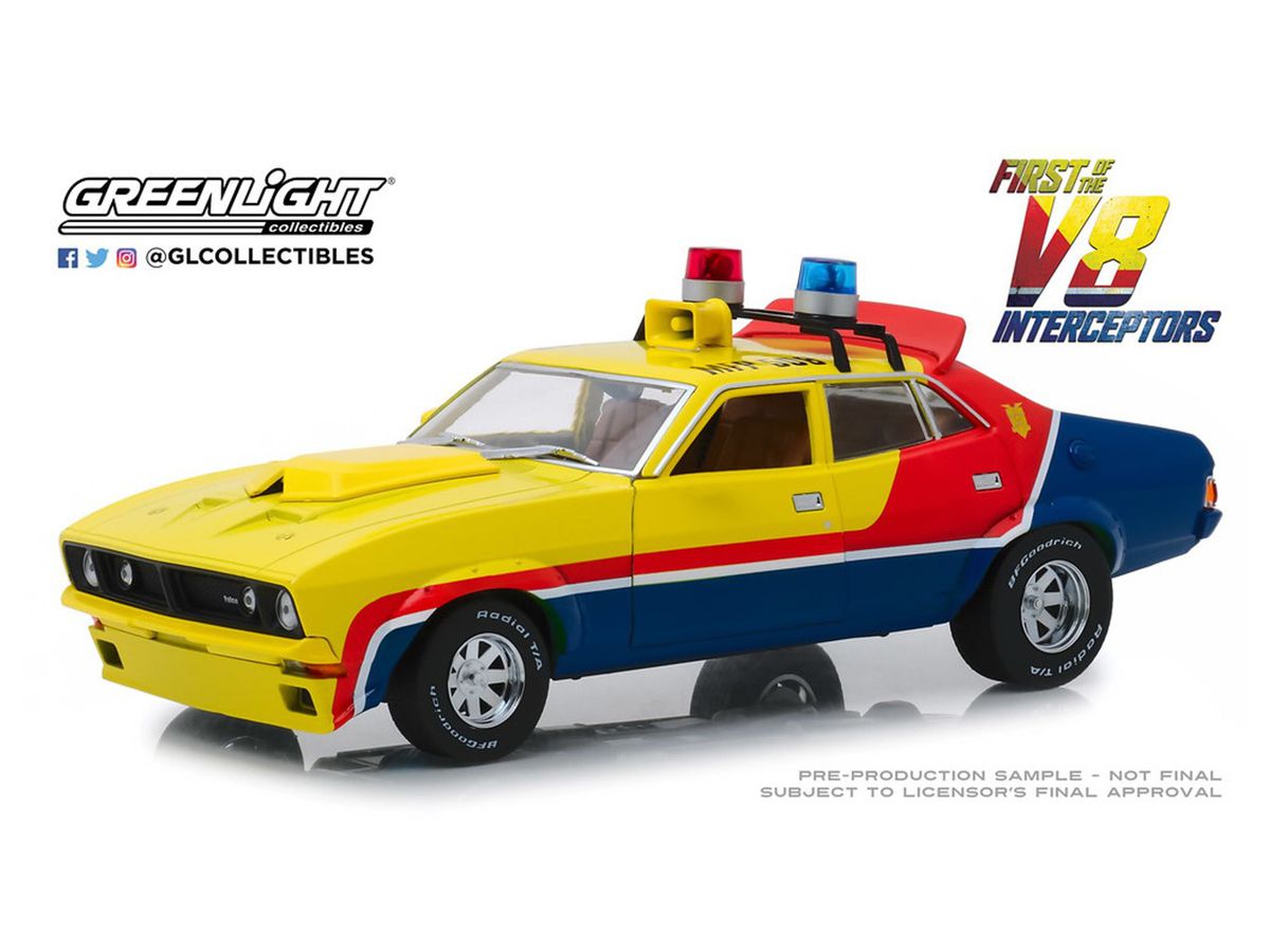 1/18 GreenLight First of the V8 Interceptors (1979) 1974 Ford Falcon XB 4-Door Sedan M.F.P. Yellow