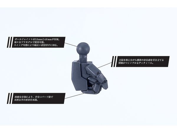 ・手首の接続用ボールジョイントは「3.5mm」「4.0mm」2種からの選択式となっており、様々なプラモデルと組み合わせることでカスタマイズの幅が広がります。