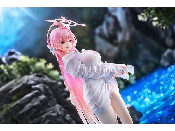 シャツはすべてクリアパーツで再現され、ロングヘアの造形や肌の塗装表現と相まって、イラストの“全身が濡れた質感”を見事に表現しています。