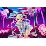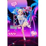 パソコンの画面から飛び出してくるかのようなポージングは躍動感にあふれ、片脚を軽やかに上 げ、わずかに前へ踏み出した動きによって、立体感と奥行きのある造形表現を実現しています。