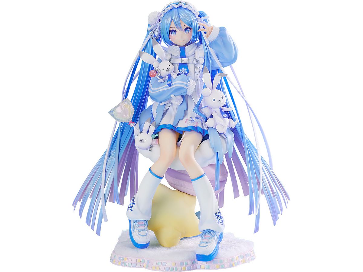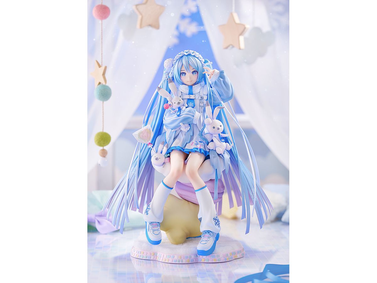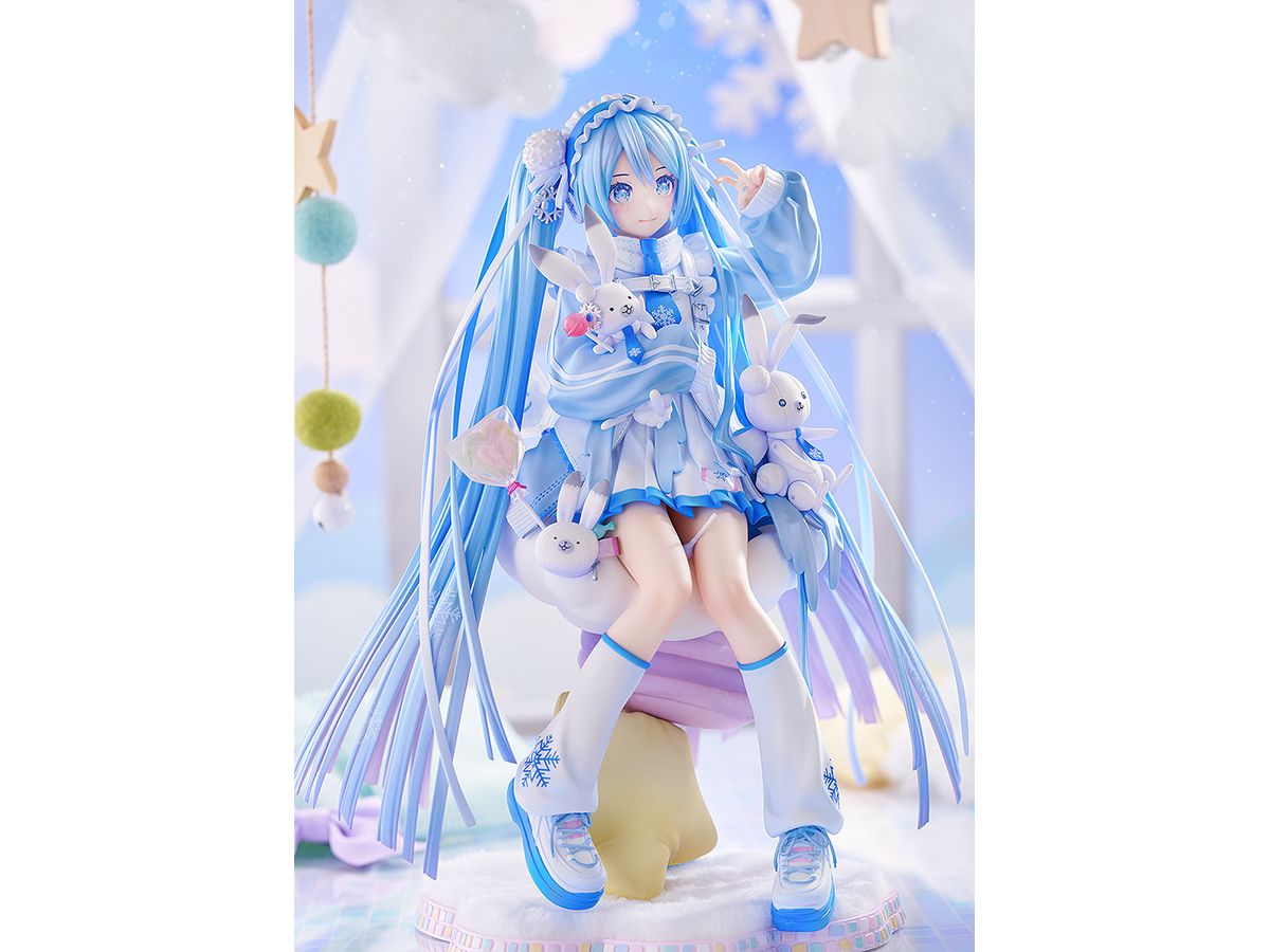 ふわふわのクッションのうえにちょこんと座った雪ミクを、ラビット・ユキネや可愛い小物達と一緒に丁寧に立体化いたしました。