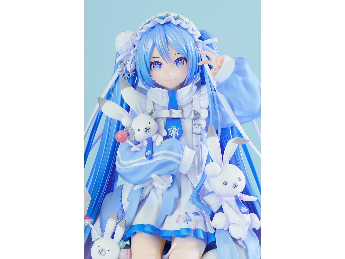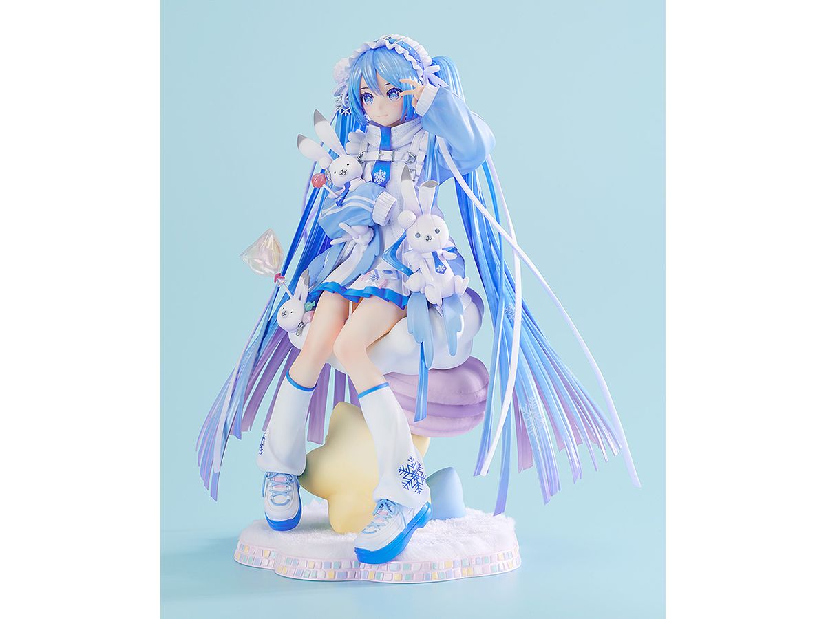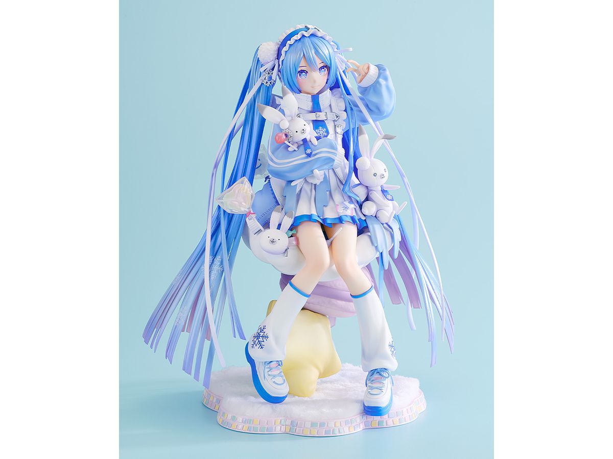 ふわふわのクッションのうえにちょこんと座った雪ミクを、ラビット・ユキネや可愛い小物達と一緒に丁寧に立体化いたしました。