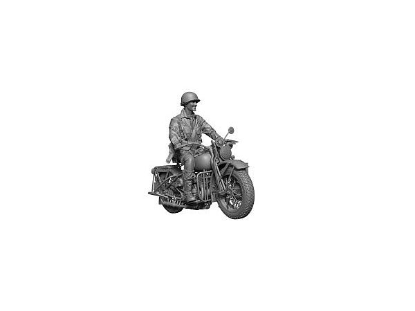 ノルマンディー上陸作戦直後のアメリカ軍空挺師団のオートバイ兵と「アイアンホース」(鉄の馬)と呼ばれたオートバイを再現したレジン製フィギュアセットです。