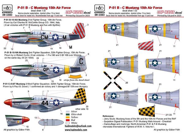 1/32 P-51B/C マスタング ''米・第15空軍''デカール