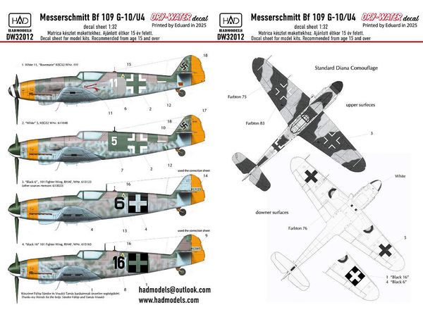 1/32 Bf109G-10/U4 ドイツ・ハンガリーデカール