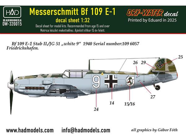 1/32 Bf109E-1 ''II /JG51 白9 1940年''デカール