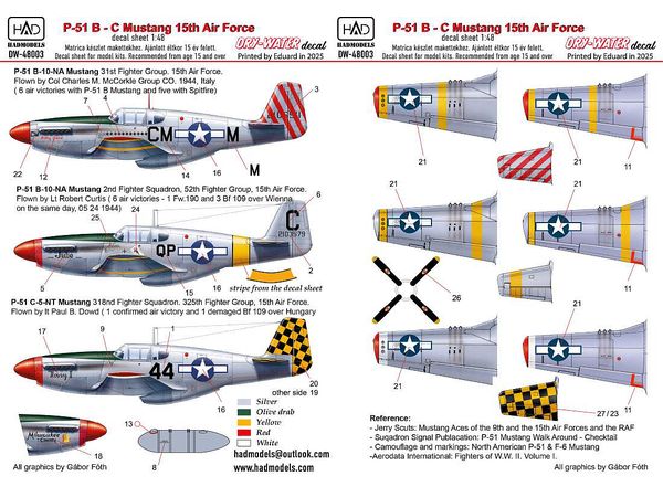 1/48 P-51B/C マスタング ''米・第15空軍''デカール