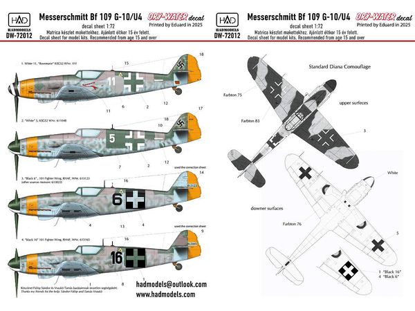 1/72 Bf109G-10/U4 ドイツ・ハンガリーデカール