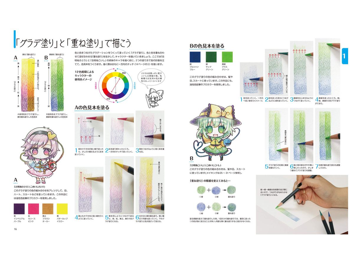 プロの絵師たちも驚くほどの美しい発色の色鉛筆で、塗っていく「コツやヒント」をていねいに解説します。