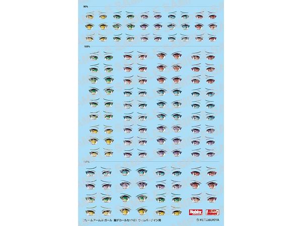 ホビージャパンが発売する「フレームアームズ・ガール 瞳デカールセット」は、(株)壽屋のオリジナルロボットコンテンツ『フレームアームズ』のスピンオフシリーズとして発売されているプラモデル『フレームアームズ・ガール』シリーズ用の水転写式瞳デカールセットシリーズ。