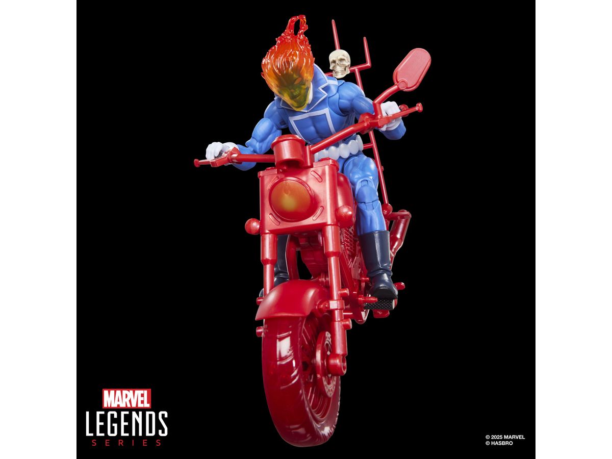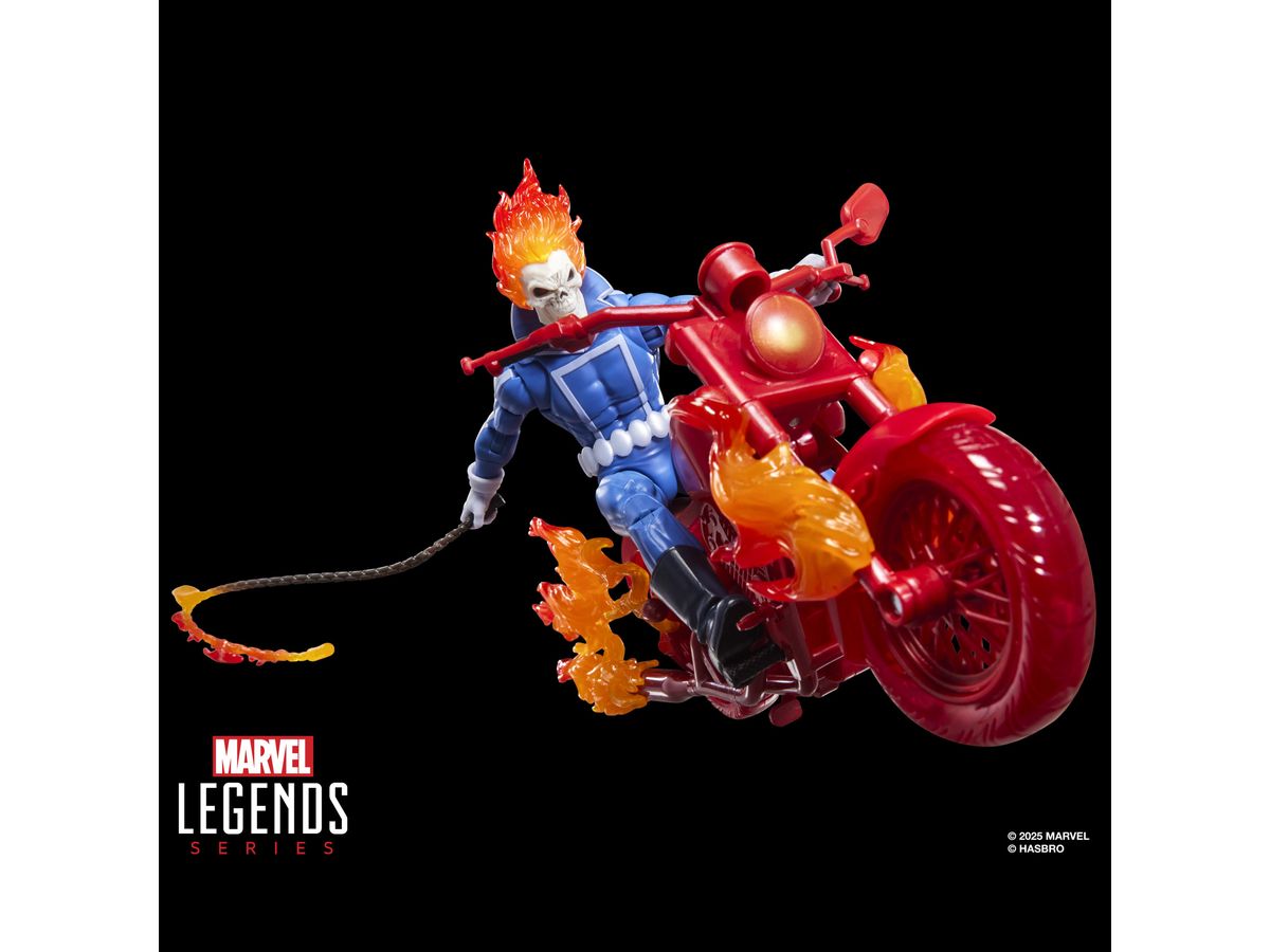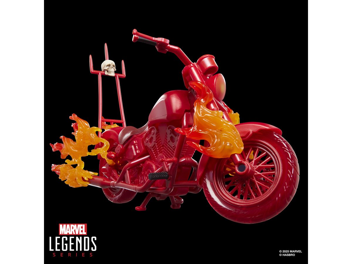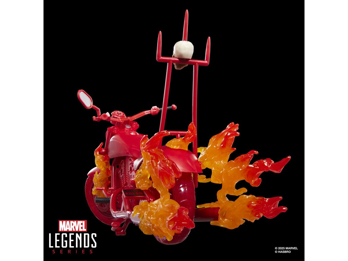 ハズブロ公式ライセンスのフィギュアセットには、炎に包まれたスカル、交換用の手のパーツ3個、チェーン、そして炎のディテールを施したゴーストライダーを象徴する燃えさかるレッドカラーのバイクを含むアクセサリー7個が付属しています。