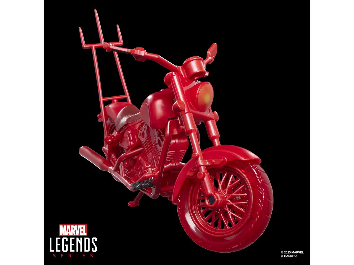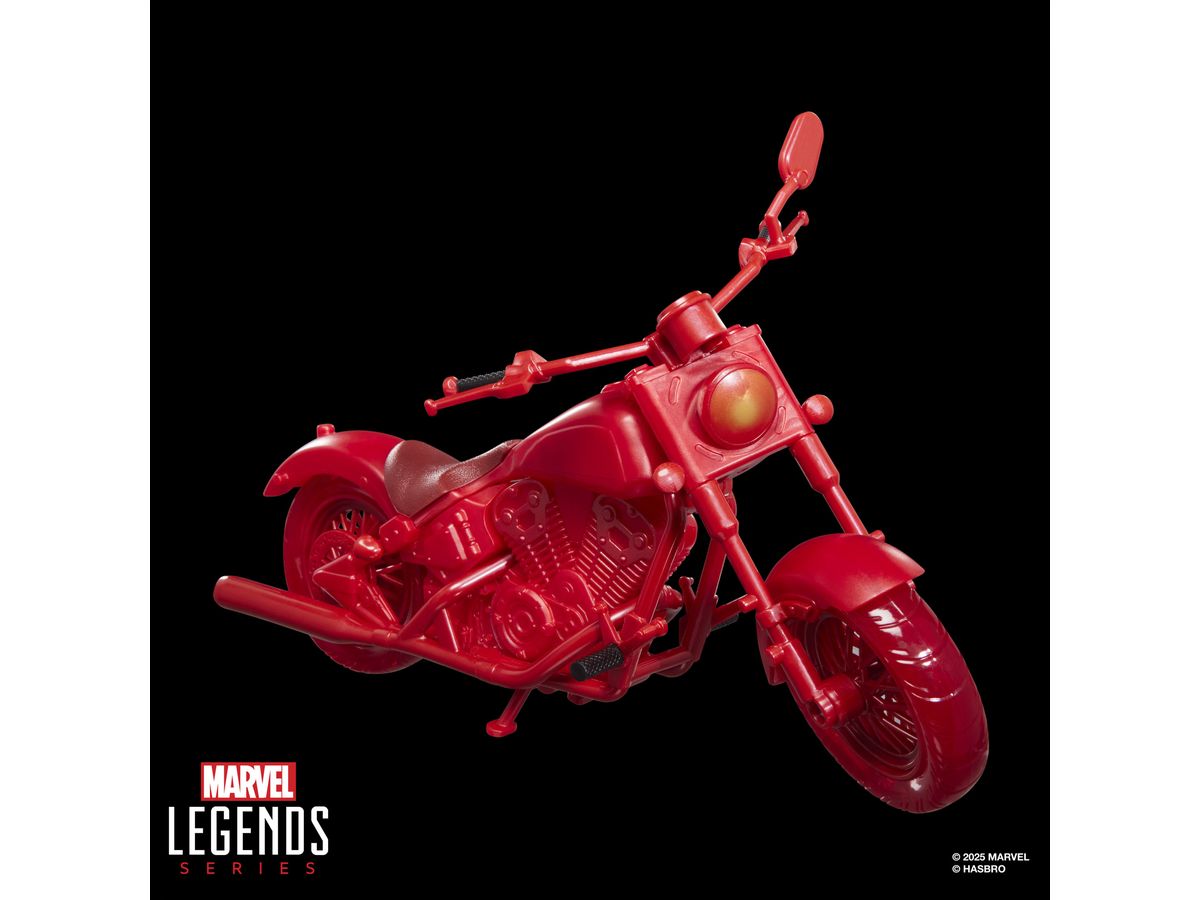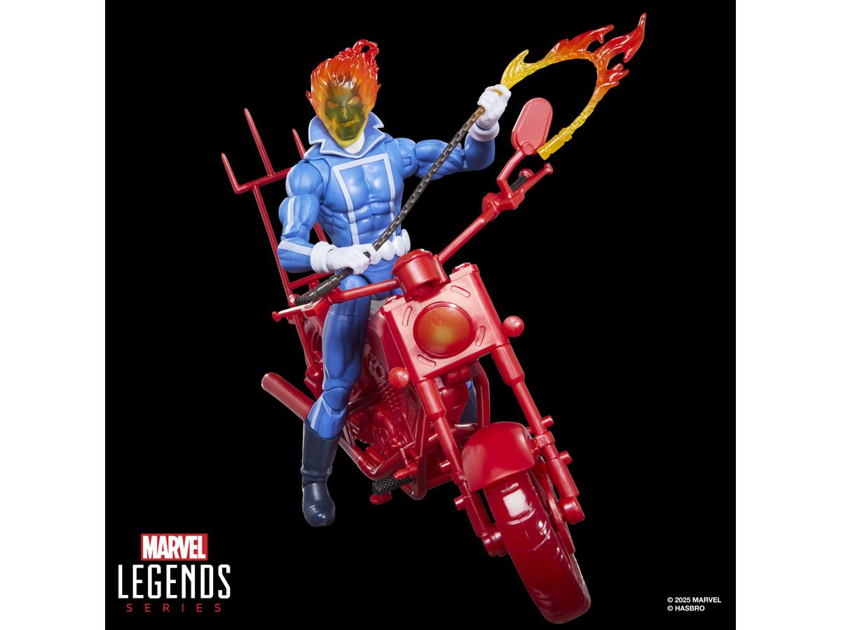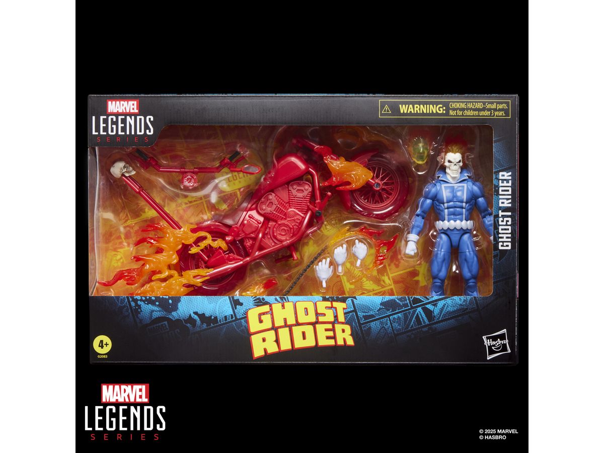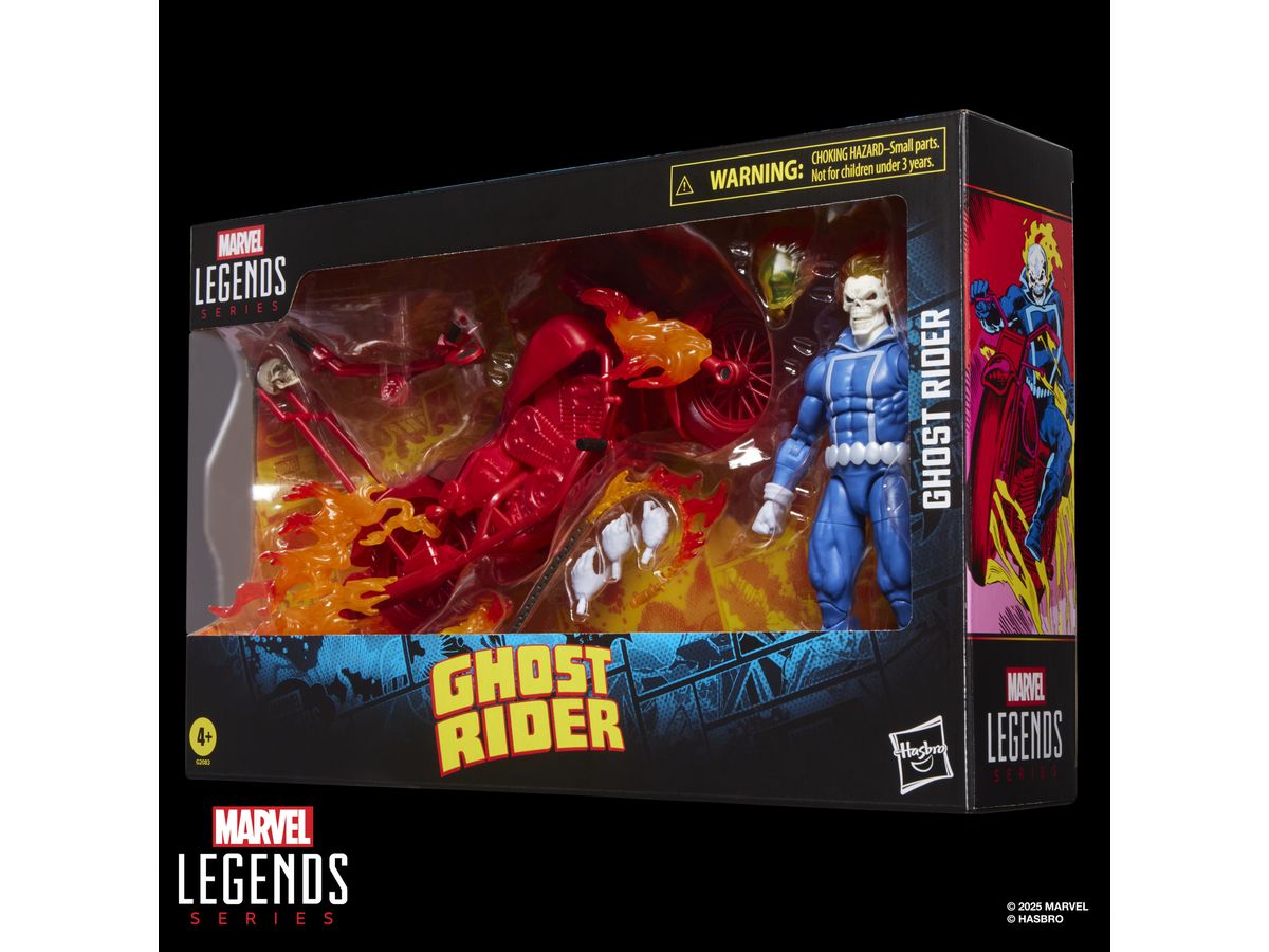 ハズブロ公式ライセンスのフィギュアセットには、炎に包まれたスカル、交換用の手のパーツ3個、チェーン、そして炎のディテールを施したゴーストライダーを象徴する燃えさかるレッドカラーのバイクを含むアクセサリー7個が付属しています。