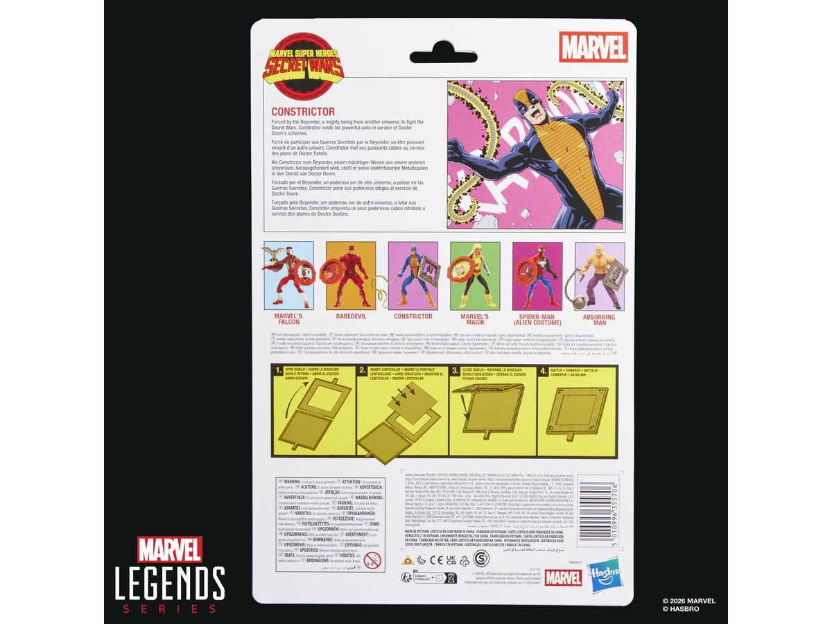 オリジナルの『シークレット・ウォーズ』をオマージュしたレトロなデザインとコミックスのキャラクターアートが施されたコレクタブルなブリスターパッケージに入っています。