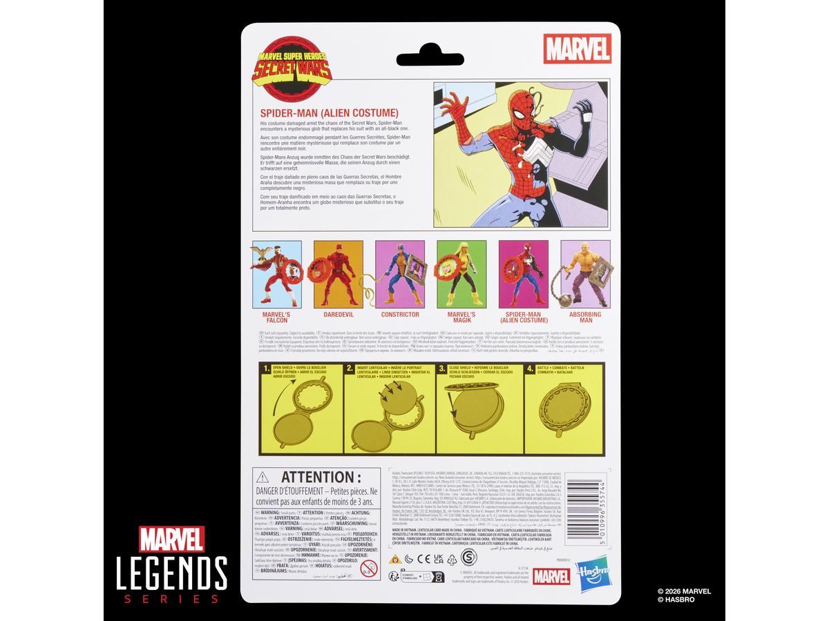 オリジナルの『シークレット・ウォーズ』をオマージュしたレトロなデザインとコミックスのキャラクターアートが施されたコレクタブルなブリスターパッケージに入っています。