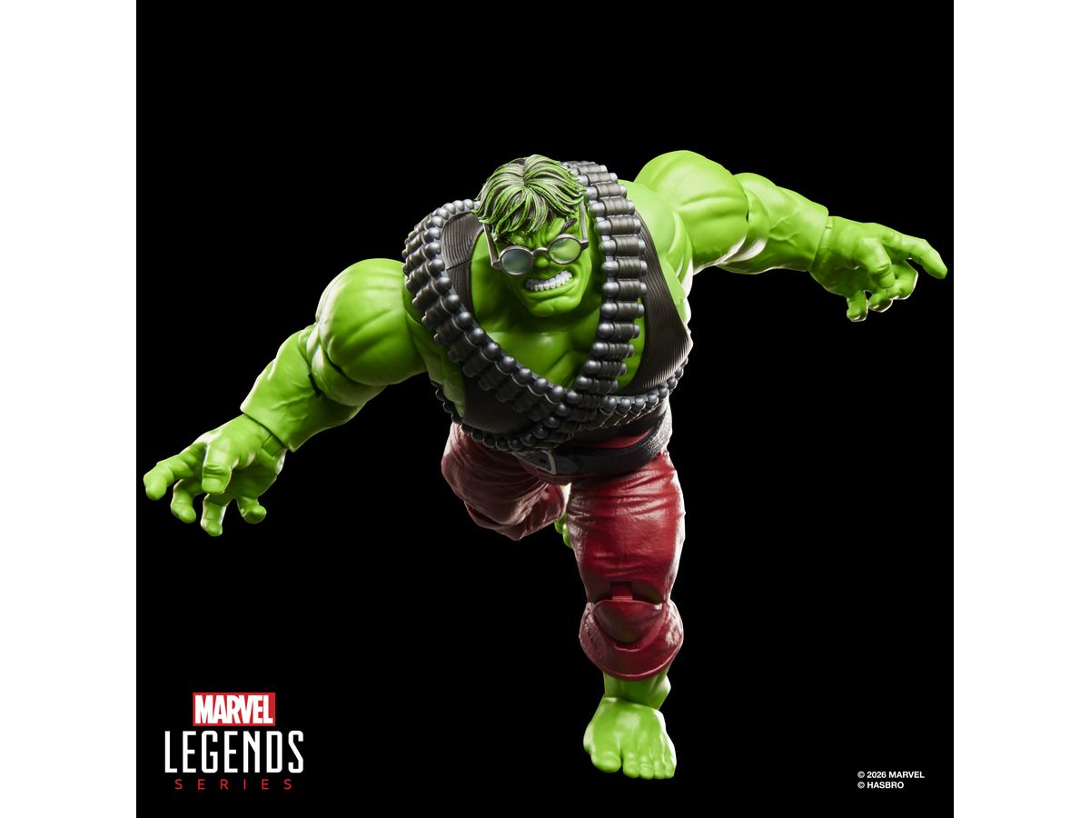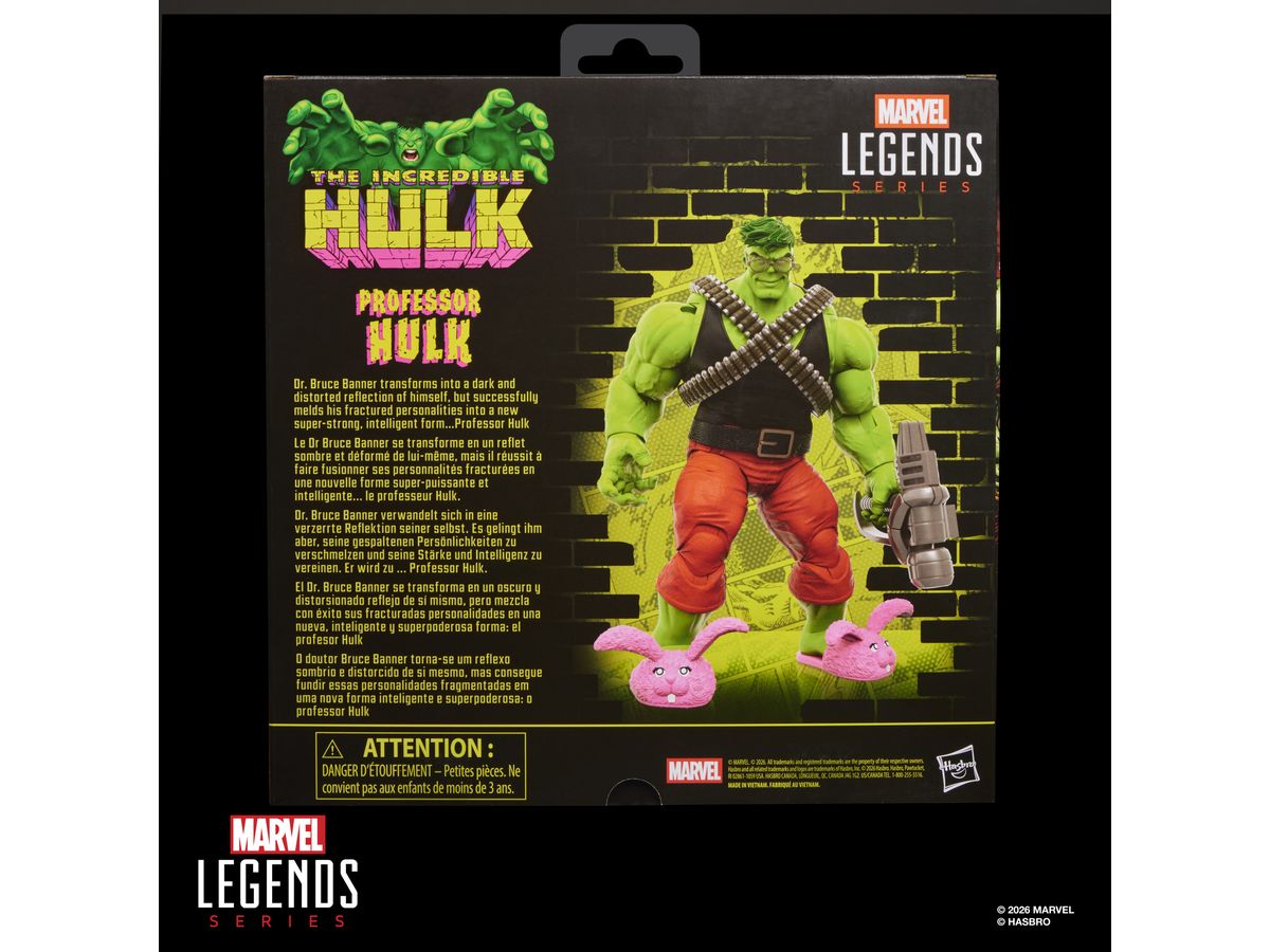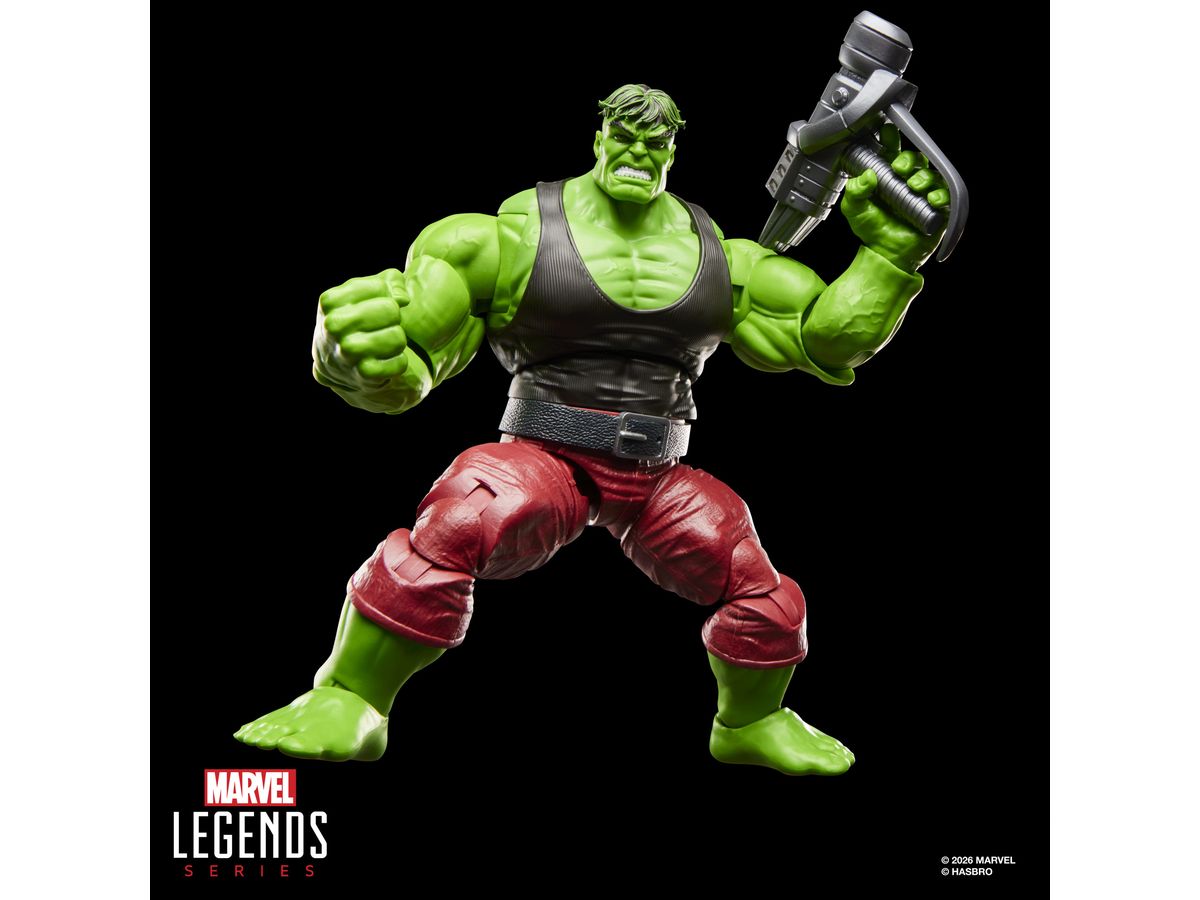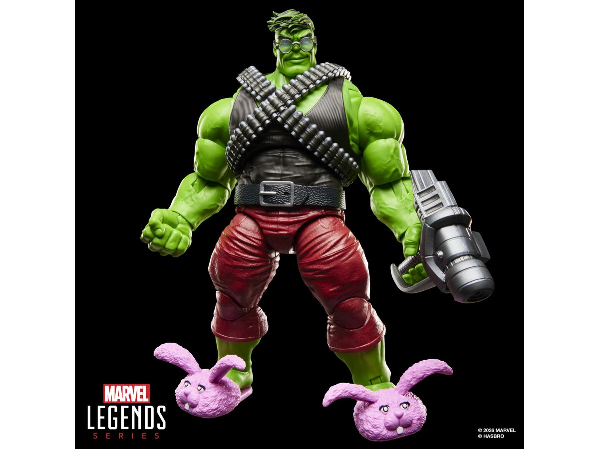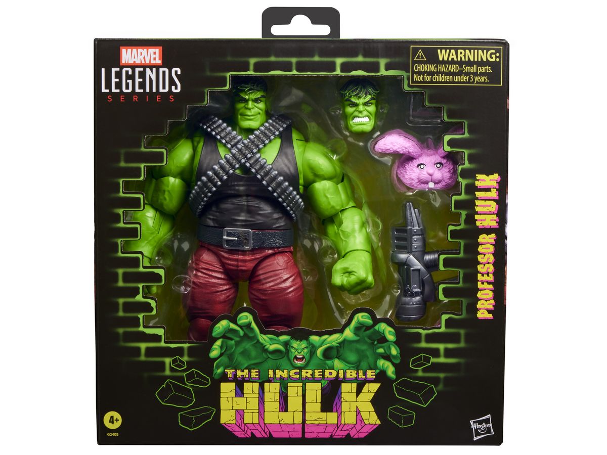公式ライセンス商品の Hasbro マーベルレジェンドセットには、怒りの表情をした交換用の顔、交換用のハルクの手 2 個、ブラスター、グラス、ピンクのうさぎのスリッパを含む 7 個のアクセサリーが付属しています