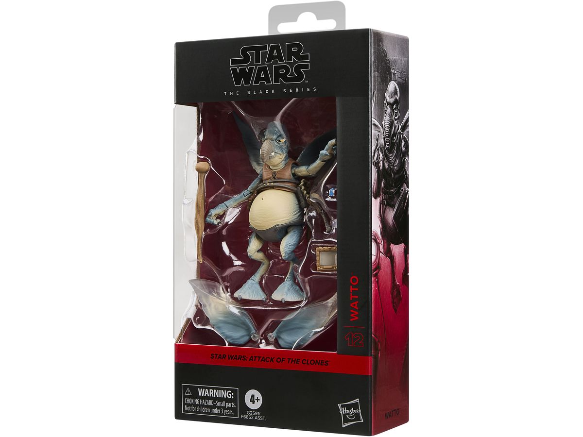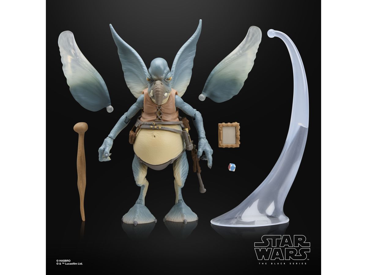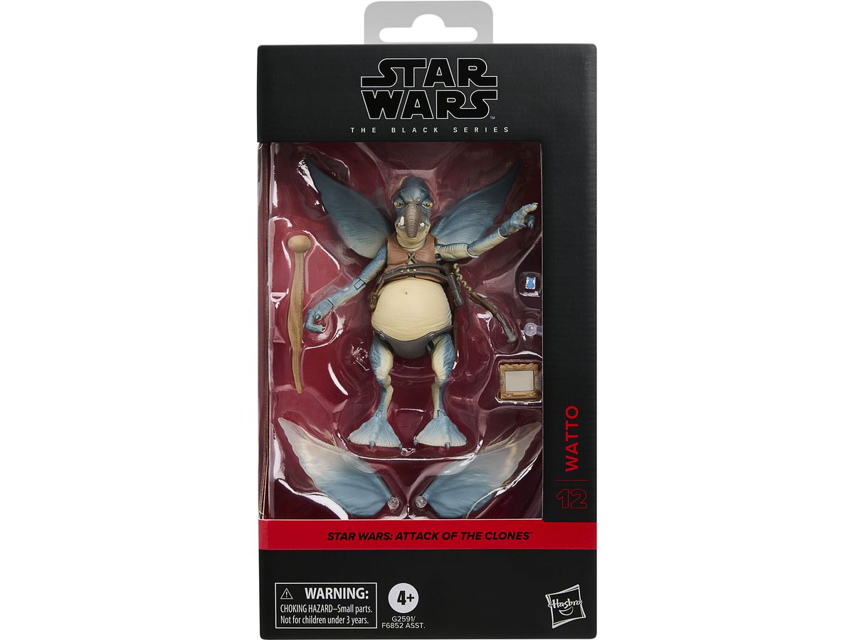 ワトーのフィギュアには、歩行用の杖、データパッド、取り外し可能な翼、飛行中のポージングを再現できるクリアスタンドのアクセサリーが付属しています。