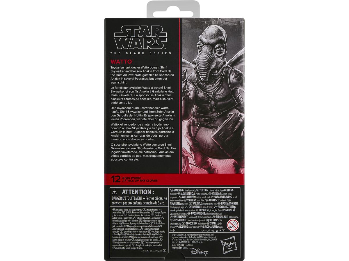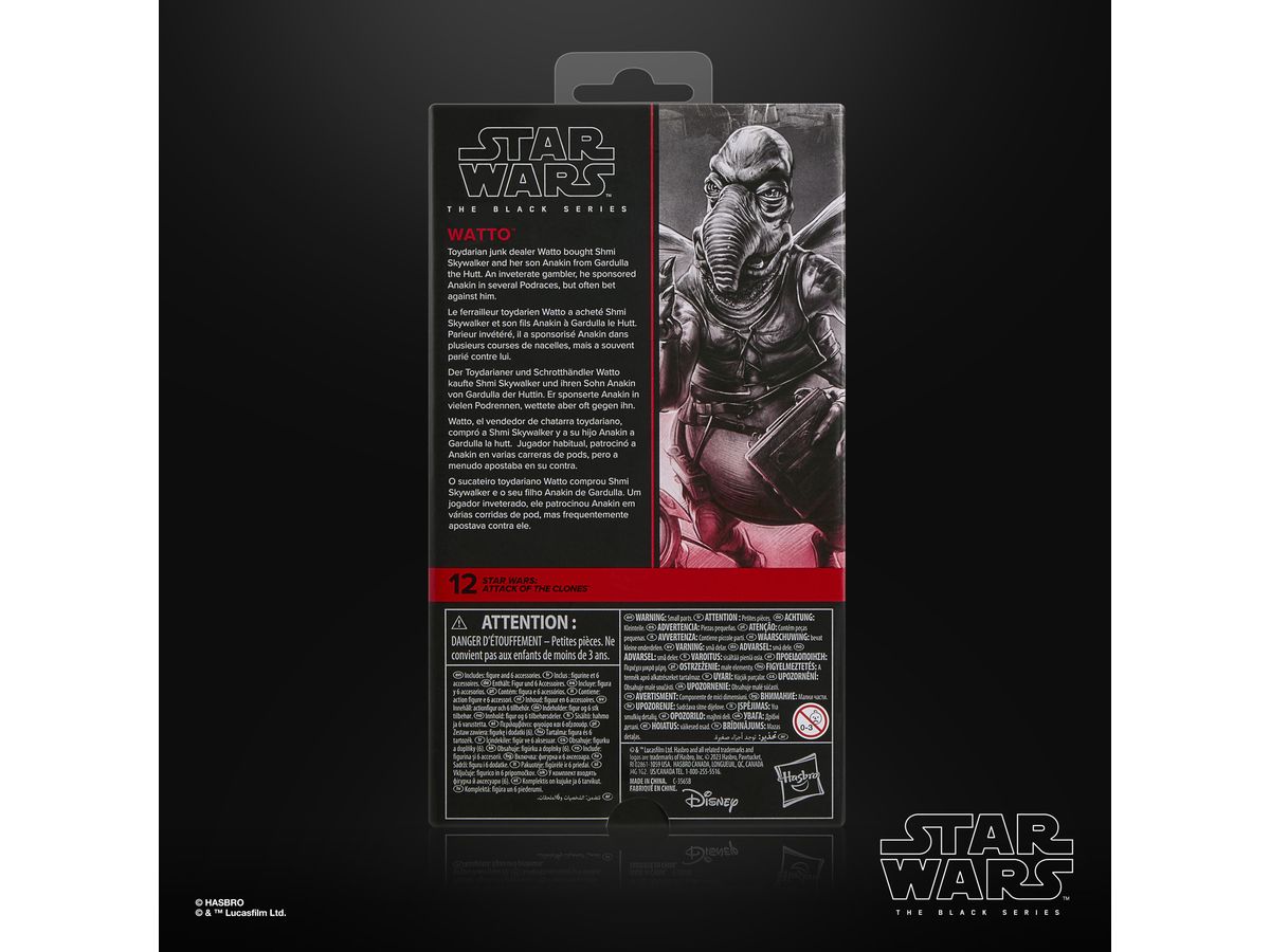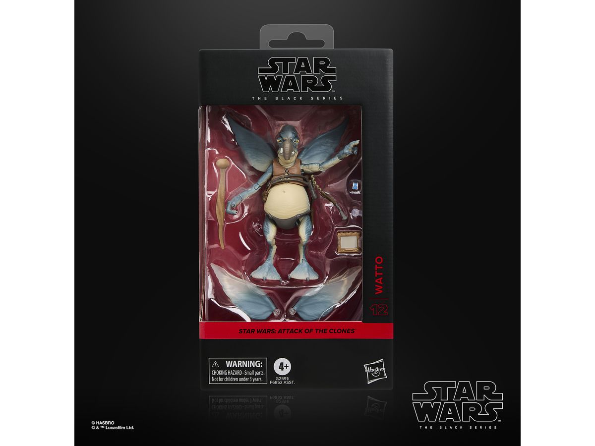 ワトーのフィギュアには、歩行用の杖、データパッド、取り外し可能な翼、飛行中のポージングを再現できるクリアスタンドのアクセサリーが付属しています。