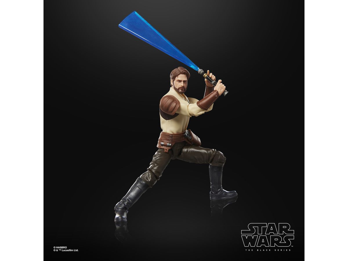 フィギュアには、スウィングエフェクト付きの青いブレードのライトセーバーとブラスターのアクセサリーが付属しています。