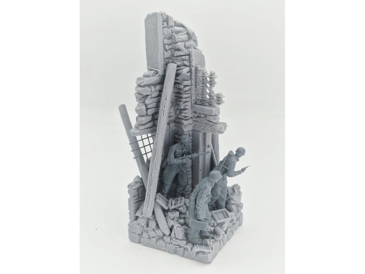激戦により瓦礫となった廃墟を拠点に戦う3人の降下猟兵をモデル化しました。